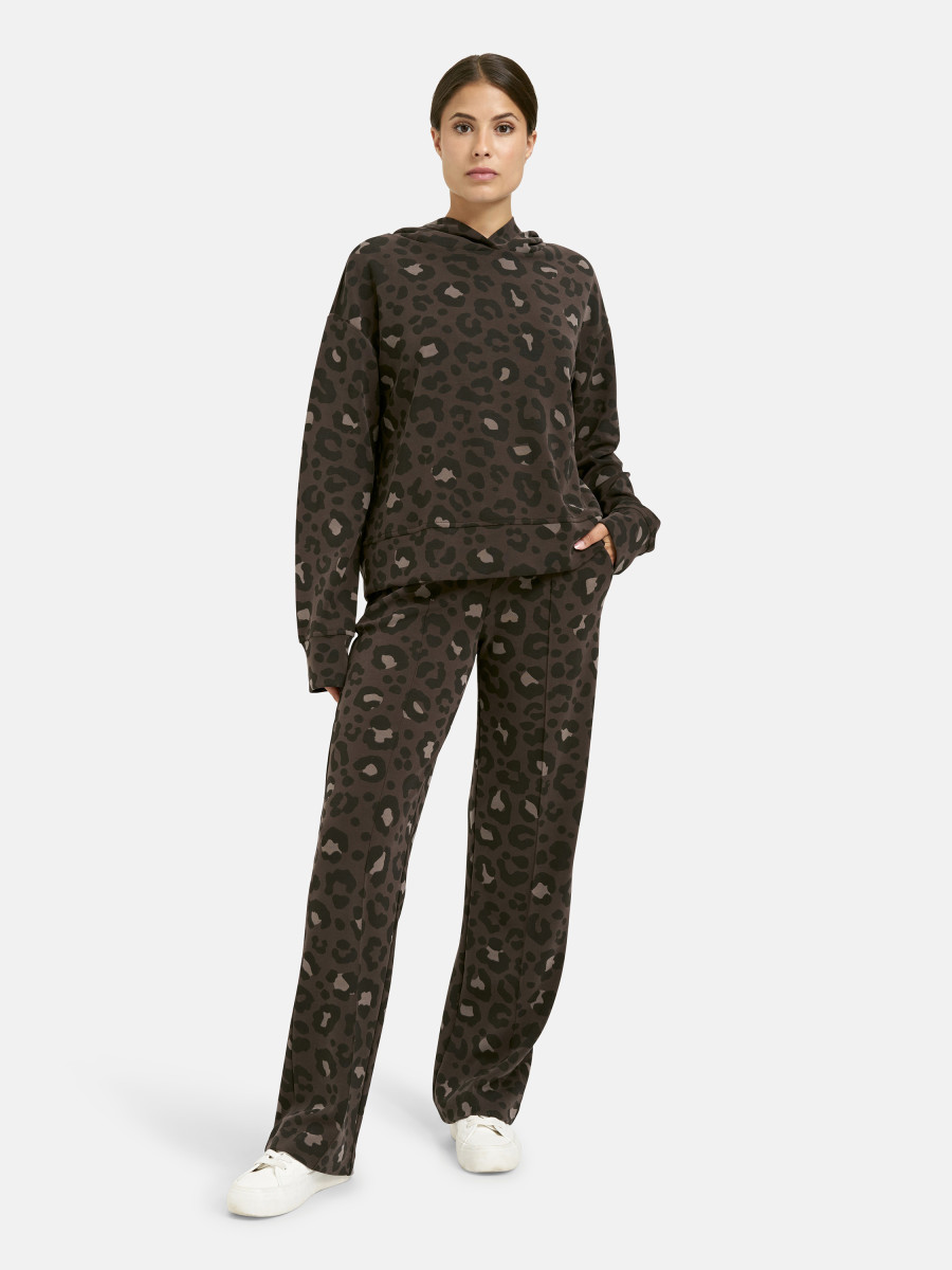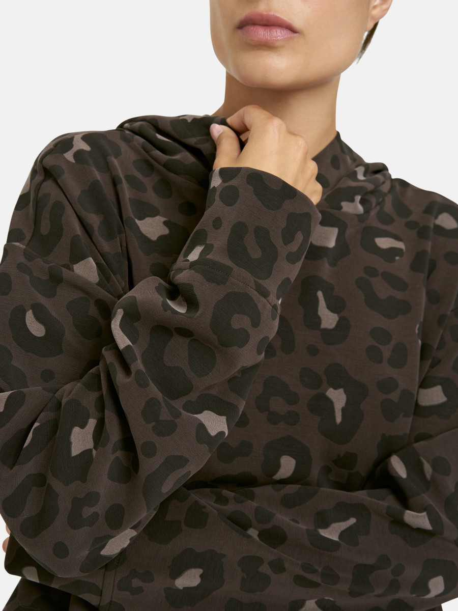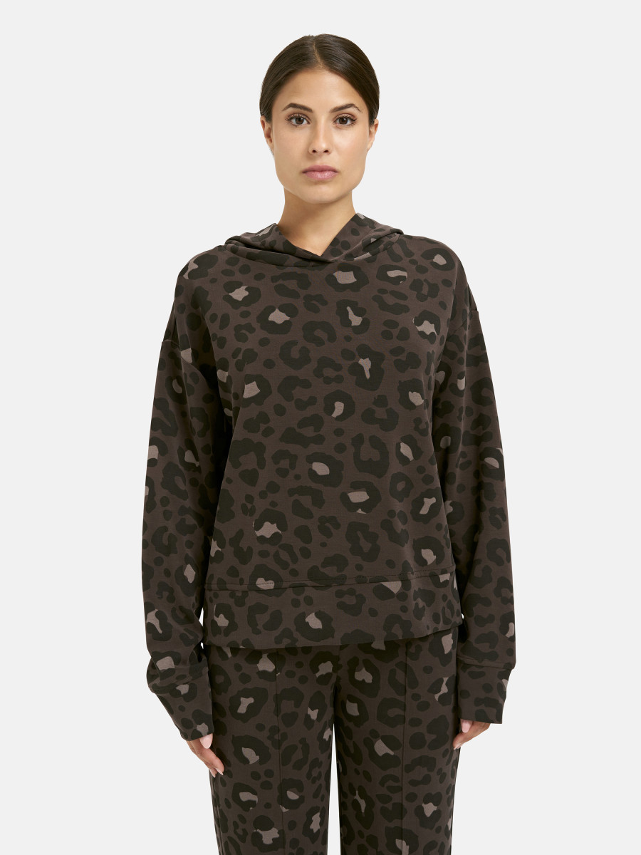 Die bequeme, leicht verkürzte Passform in Kombination mit den überschnittenen Schultern (Raglan-Ärmel) und den breiten Bündchen sorgt für einen modernen, lässigen Look und hohen Tragekomfort. Der Hoodie ist perfekt, um ihn zu schlichten Jeans oder Leggings zu kombinieren und so ein modisches Statement zu setzen. Mit diesem Animal-Print-Hoodie bringst du mühelos Stil in deinen Alltag.