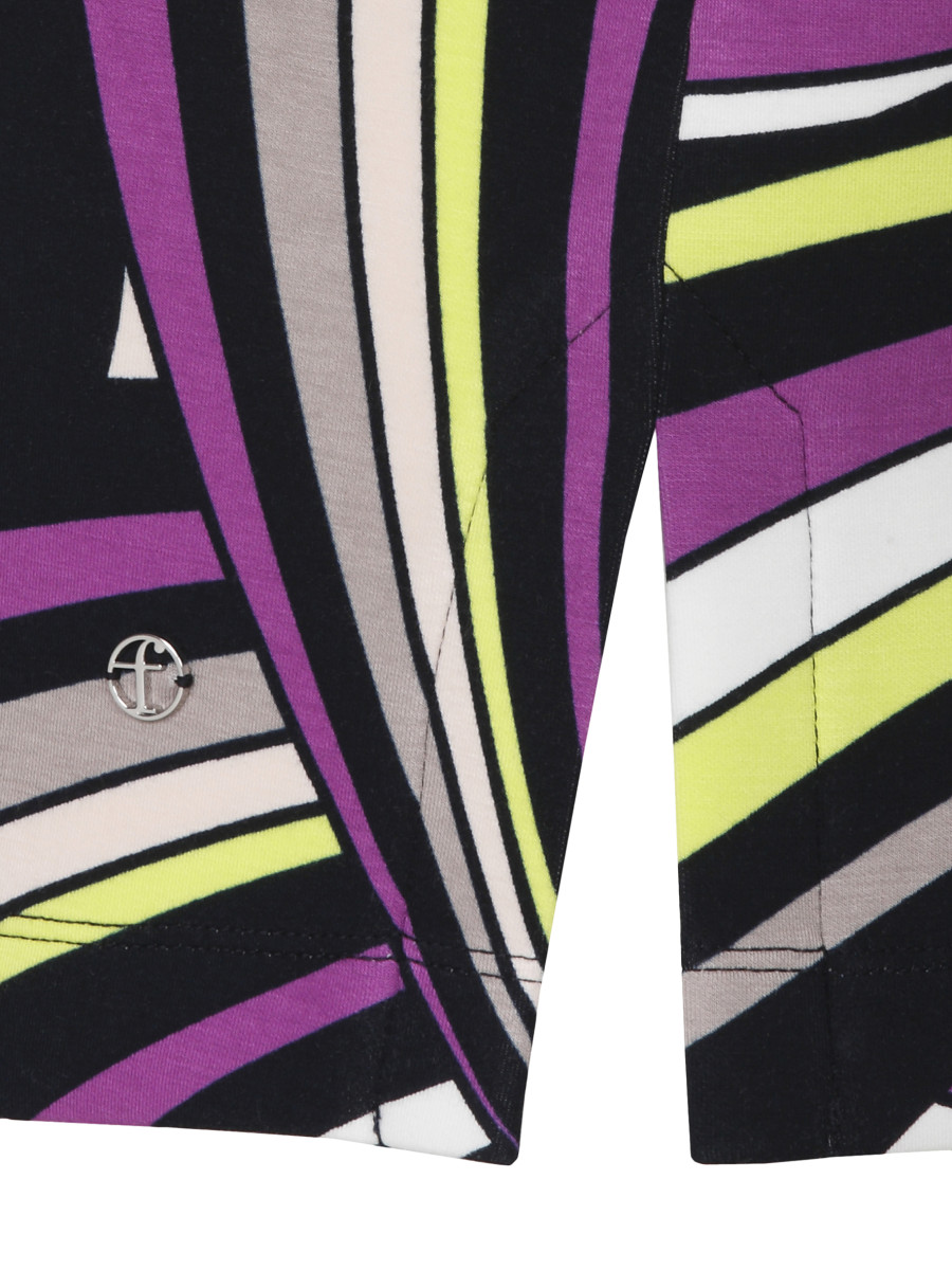 Das Shirt ist klassisch mit einem weiten Rundhalsausschnitt geschnitten und bietet durch die leicht überschnittenen Schultern und den lockeren Fall hohen Tragekomfort. Die langen Ärmel enden in dezenten Bündchen. Gefertigt aus einem weichen, elastischen Material, verspricht das Oberteil eine optimale Passform und Bewegungsfreiheit. Das Design greift das Muster der passenden Hose auf, ist aber auch solo ein ausdrucksstarkes Statement-Piece. Es eignet sich hervorragend, um schlichte Unterteile zu ergänzen und einen mutigen, modernen Casual-Look zu kreieren.
