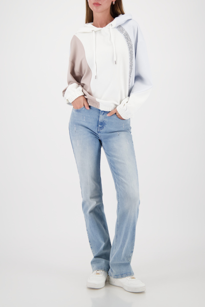 Stylisches Colorblock-Sweatshirt aus einer fließenden Viskose mit Strasssteinen und Kapuze – modern und elegant.
