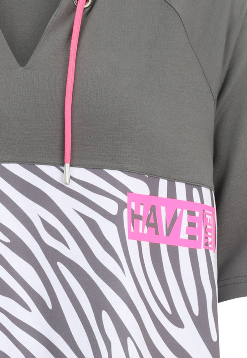 Das Sweatshirt von Doris Streich ist aus softer elastischer Sweatware gefertigt. Ein Frontprint mit weißem Zebra-Muster mit Wording HAVE FUN machen dieses Sweatie mit langem Halbarm zu Ihrem neuen Lieblingsteil. Zwei Ösen mit dekorativen Kordeln und der lange Halbarm runden den lässigen Style ab.