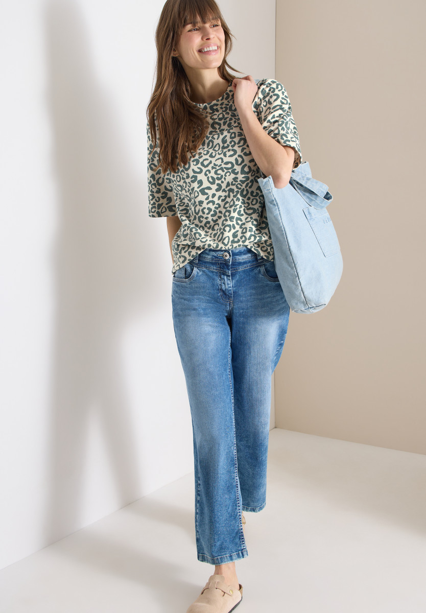 Der Kurzarmpullover von CECIL für Damen bringt mit seinem Animal Print modische Lässigkeit in deinen Casual-Look. Der Rundhalsausschnitt und die bequeme Passform sorgen für ein angenehmes Tragegefühl, die Baumwollqualität trägt sich weich und komfortabel. Perfekt für dich, wenn du einen unkomplizierten Strickpullover mit trendigem Muster suchst.