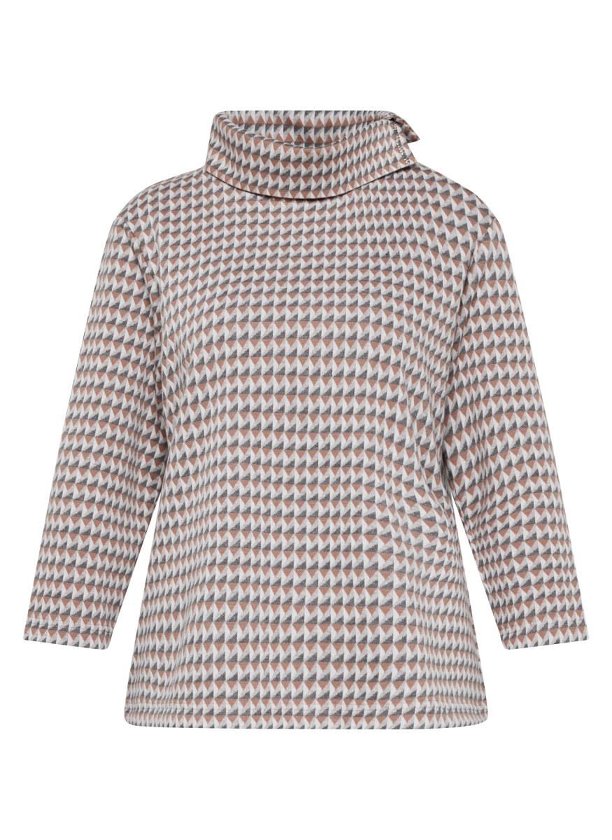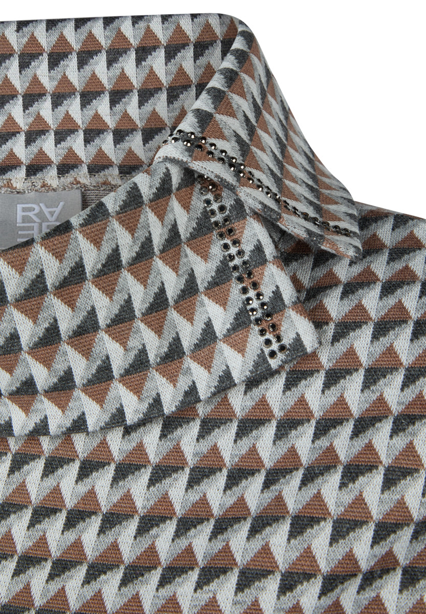 Setzen Sie ein stilvolles Statement mit diesem modischen Shirt in trendigem Allover-Grafikmuster. Das geometrische Design in harmonischen Naturtönen sorgt für einen modernen, aber dennoch zeitlosen Look – ideal für Büro, Freizeit oder schicke Anlässe.