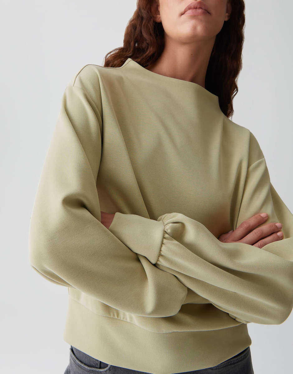 Dieses modische Damen-Sweatshirt vereint lässigen Komfort mit stilvollem Design. Die lockere Passform, kombiniert mit einem schmal zulaufenden Schnitt, sorgt für eine moderne Silhouette mit Wohlfühlfaktor. Die überschnittenen Schultern und der Langarm-Schnitt betonen den entspannten Look, während der Funnel Neck (hoher Stehkragen) ein elegantes Detail und angenehme Wärme bietet.