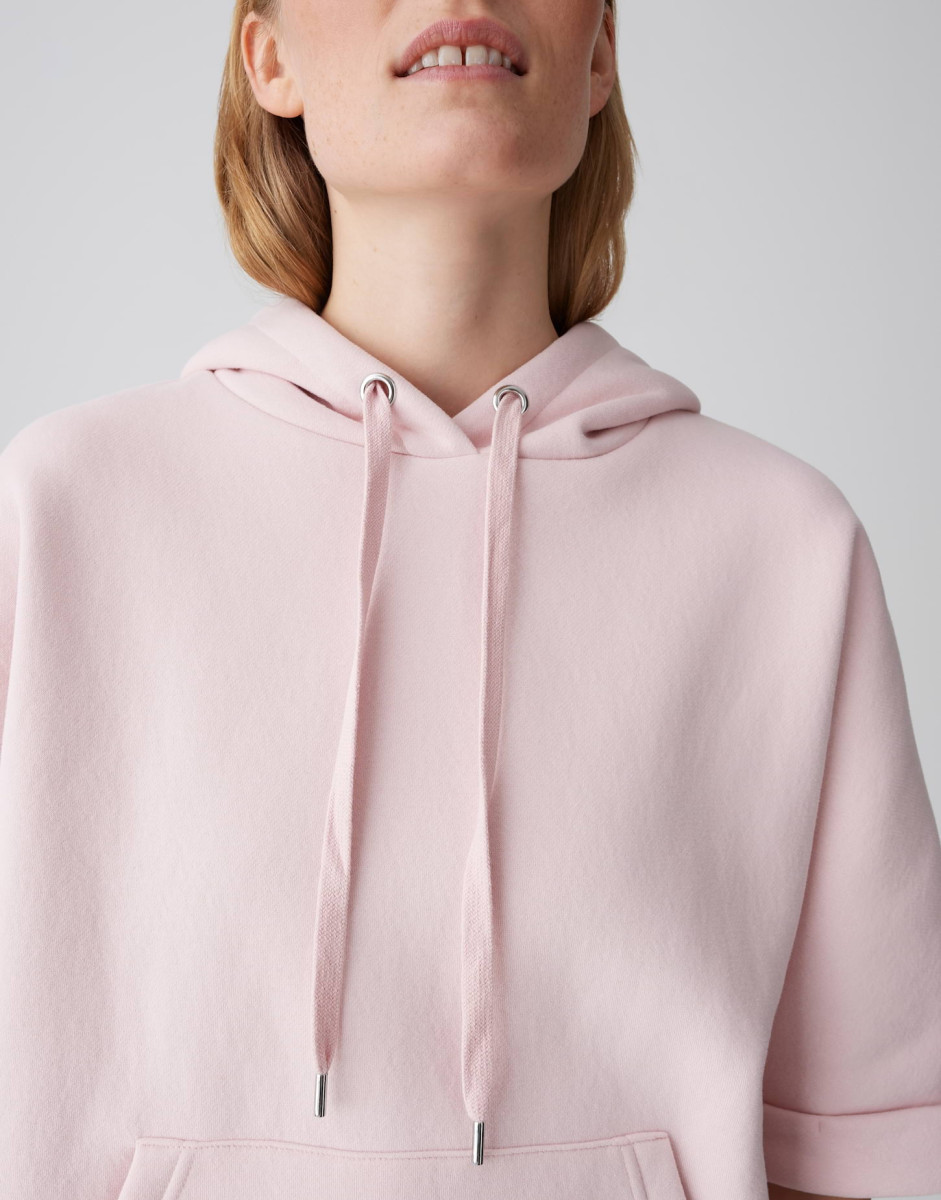 Das kurz geschnittene Sweatshirt überzeugt mit weiter Passform im Boxy-Fit und überschnittenen Schultern für einen modernen Look. Die Kapuze mit Tunnelzug, die Kängurutasche vorne und der verstellbare Saum verleihen dem Teil funktionale Details und einen lässigen Charakter. Das weiche Sweatmaterial besitzt eine samtige Oberfläche und leichte Elastizität, die für ein angenehmes Tragegefühl sorgt.Lief.-Art-Nr: 1053664020418