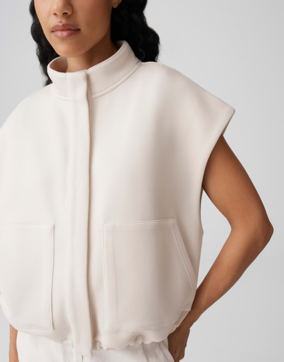 Das Damen Sweatshirt Gohita besticht durch seine weite O-Form und überschnittene Schultern für einen lässigen Look. Der Stehkragen und der Tunnelzug im Saum verleihen dem Sweatshirt eine moderne Silhouette, während der voluminöse Fall und der glatte Griff für angenehmen Tragekomfort sorgen. Verdeckte metallische Druckknöpfe und die Rückenlänge von ca. 55 cm (bei Größe S) runden das Design ab.