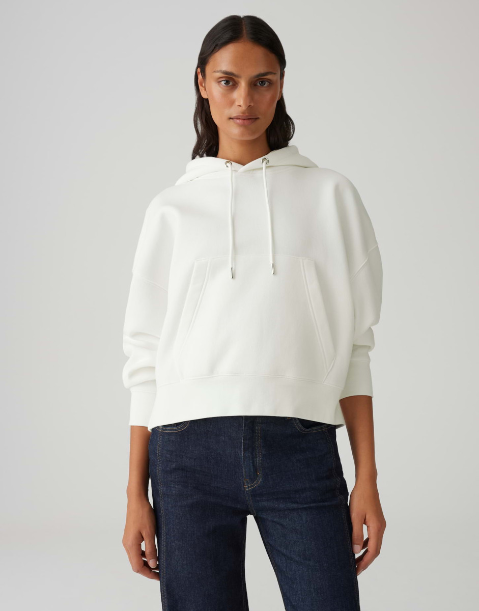 Das Grover Sweatshirt für Damen überzeugt durch seine weite, komfortable Passform mit überschnittenen Schultern und einer schmal zulaufenden Silhouette. Kapuze mit Tunnelzug, aufgesetzte Tasche und elastische Rippbündchen sorgen für praktischen Tragekomfort im Alltag. Die angeraute, samtig weiche Oberfläche macht das Sweatshirt besonders anschmiegsam und ideal für entspannte Looks.Lief.-Art-Nr: 10522913897412