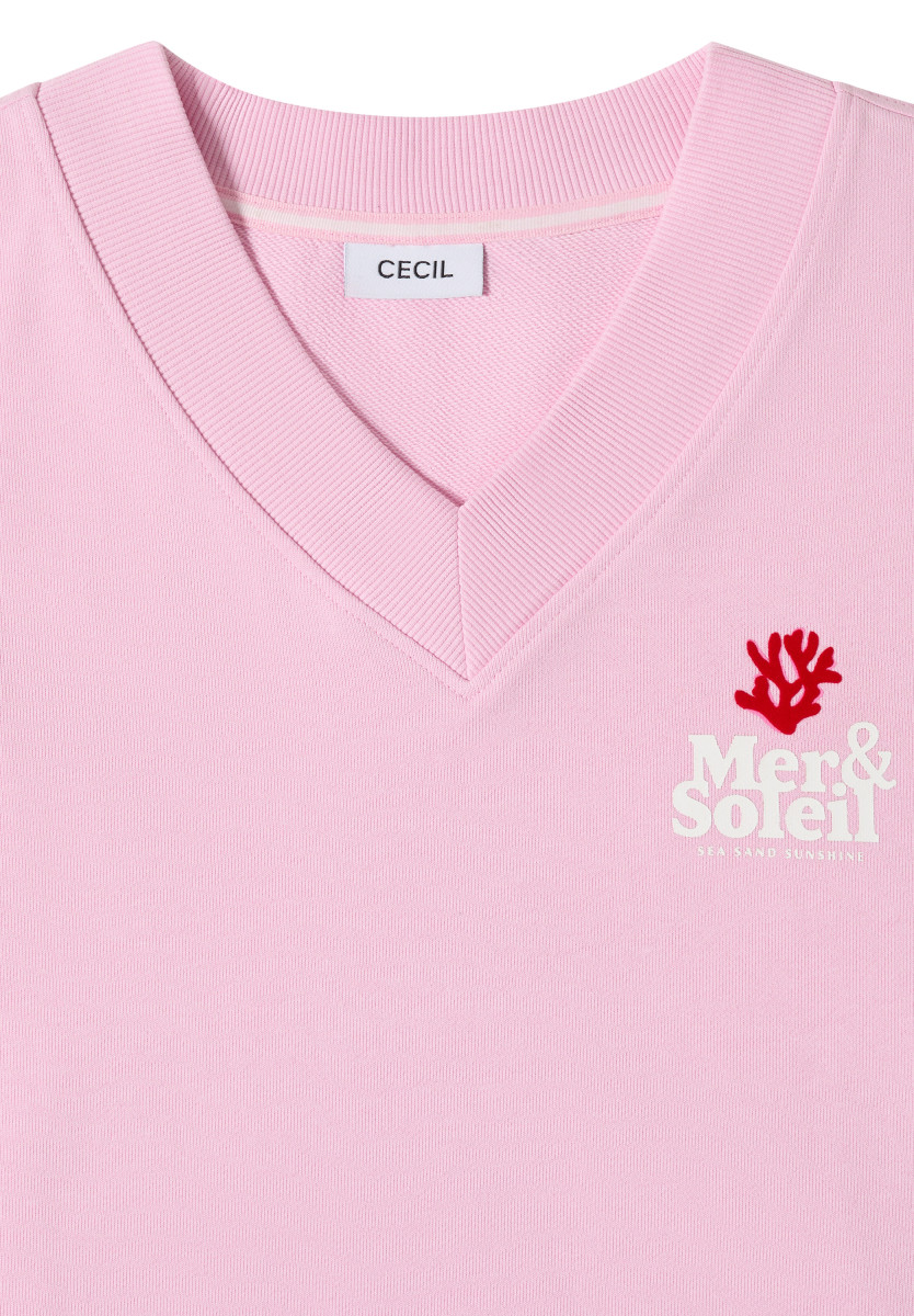 Dieses Kurzarmsweatshirt von CECIL für Damen setzt mit seinem Backprint modische Akzente im Casual-Look. Der V-Ausschnitt verleiht dem Design eine feminine Note, während ozeaninspirierte Motive mit Unterwasser-Flair für sommerliche Frische sorgen. Die weiche Baumwollqualität trägt sich angenehm und bequem, seitliche Schlitze im Saum bieten zusätzliche Bewegungsfreiheit. Ideal für dich, wenn du ein lässiges Sweatshirt mit besonderem Print suchst.