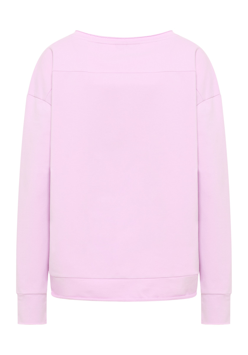 Gerade geschnitten, lockere Passform und überschnittene Schultern | Weiche, elastische Sweatqualität, kuschelig angeraut, in Batik Optik | Angesetzter Kragen und Bündchen, Rückenpasse sowie Raw-Edge Saumverarbeitung | Kreisrunter Logoprint über dem Bündchen auf der Vorderseite