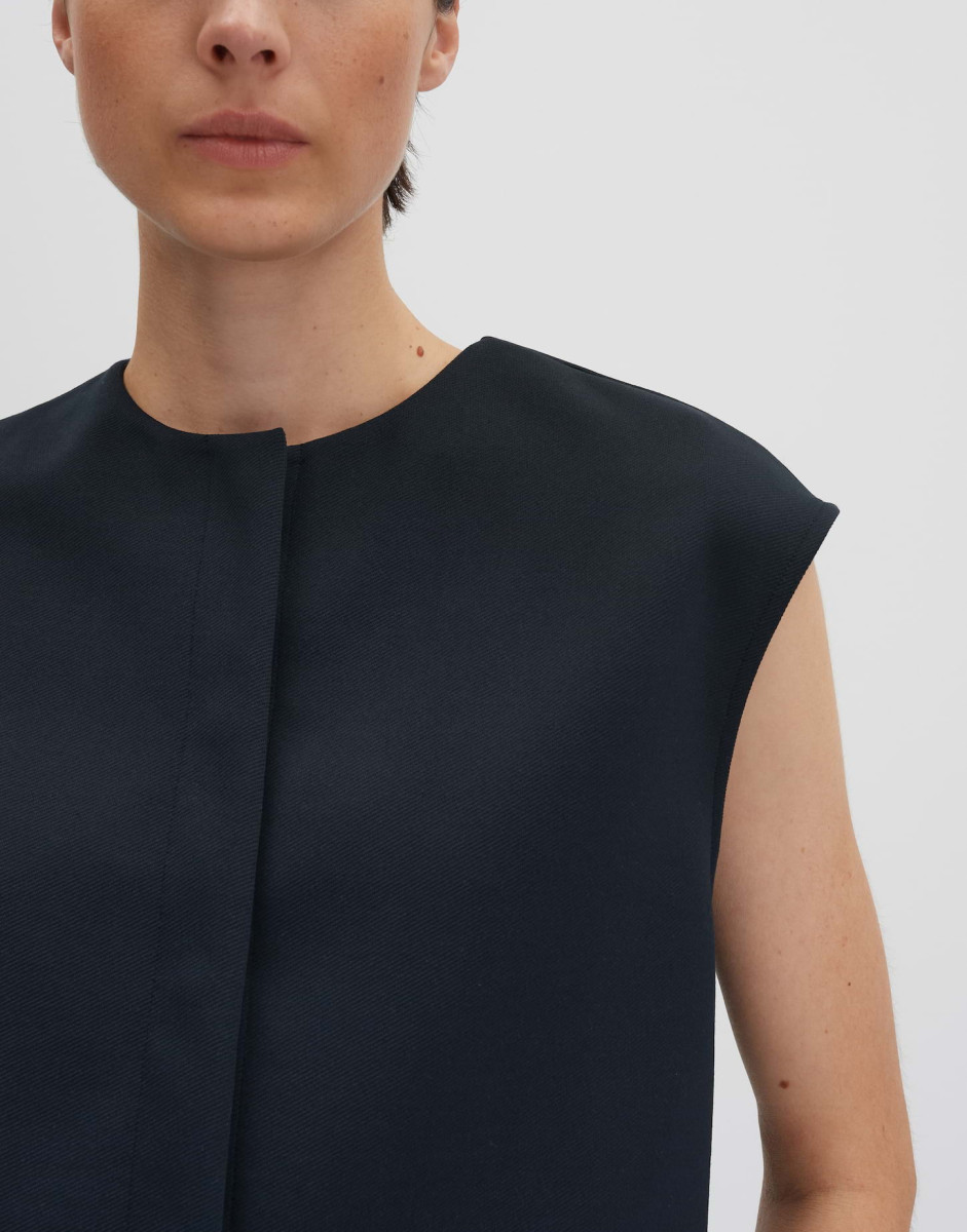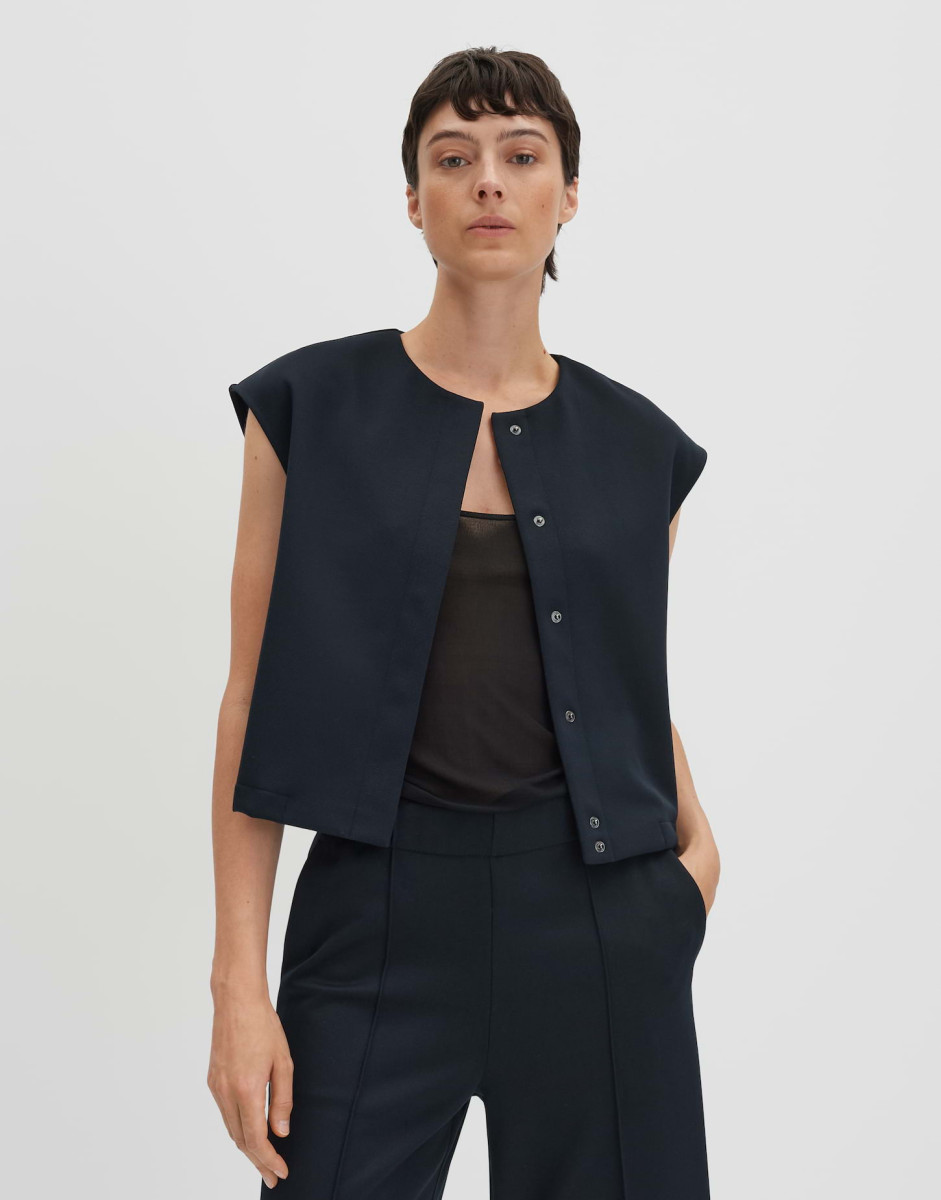 Normale Passform | Leicht talliert | Leicht verkürzt geschnitten | Überschnittene Schulter | Rundhalsausschnitt | Rückenlänge ca. 49 cm bei Größe 36 | Model Größe 176 cm – trägt Größe 36 | Sweatware | Dezente Twillstruktur | Fester Griff | Leicht elastischer Stoff | Knitterarm | Verdeckte Knopfleiste