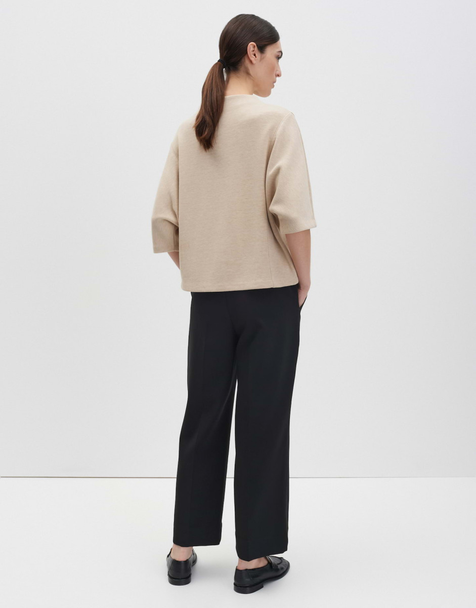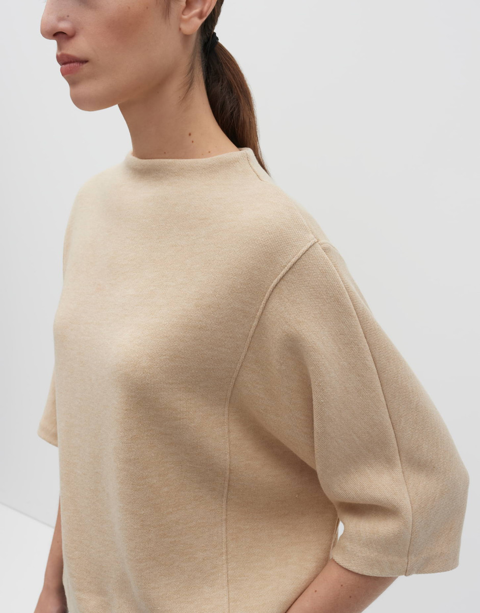 Das Sweatshirt Upia überzeugt durch seine weite Passform und den geraden Schnitt, die für einen modernen und komfortablen Look sorgen. Fledermausärmel in 3/4-Länge und ein Funnel Neck verleihen dem Modell eine lässige Silhouette, während auffällige Teilungsnähte stilvolle Details setzen. Die weiche Sweatware mit Mélange-Effekt fühlt sich angenehm an und der elastische Griff sorgt für gute Bewegungsfreiheit.Lief.-Art-Nr: 1051287898106
