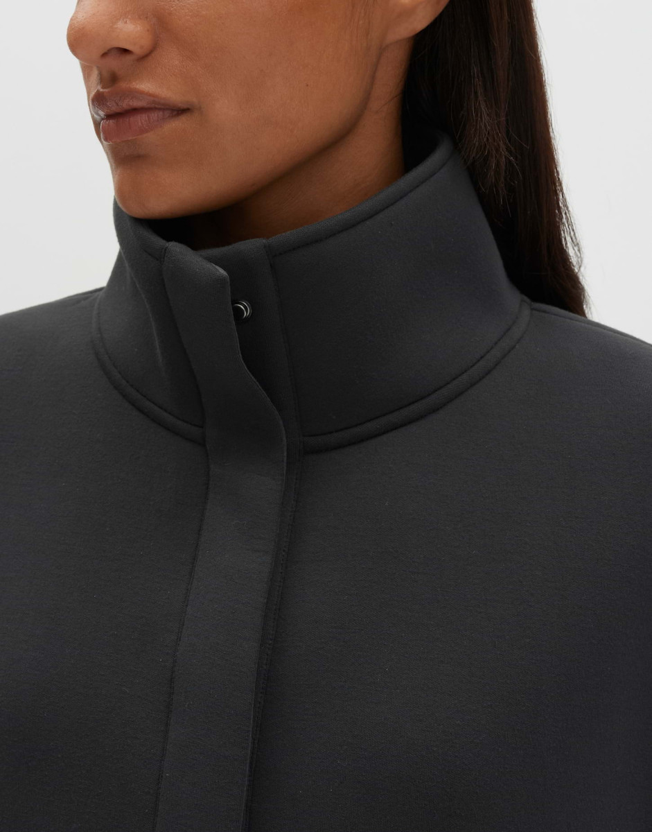 Das Sweatshirt Upiri überzeugt mit einer weiten, ovalen Form und überschnittener Schulter für einen modernen, entspannten Look. Stehkragen, verdeckte metallische Druckknöpfe und Pattentaschen setzen klare Details, während der Tunnelzug im Saum eine individuell anpassbare Silhouette ermöglicht. Das ungefütterte Scuba-Sweatmaterial ist formstabil, hat einen glatten Griff und zeigt einen dezenten, matten Glanz; die Rückenlänge beträgt ca. 56 cm.Lief.-Art-Nr: 10513813851408