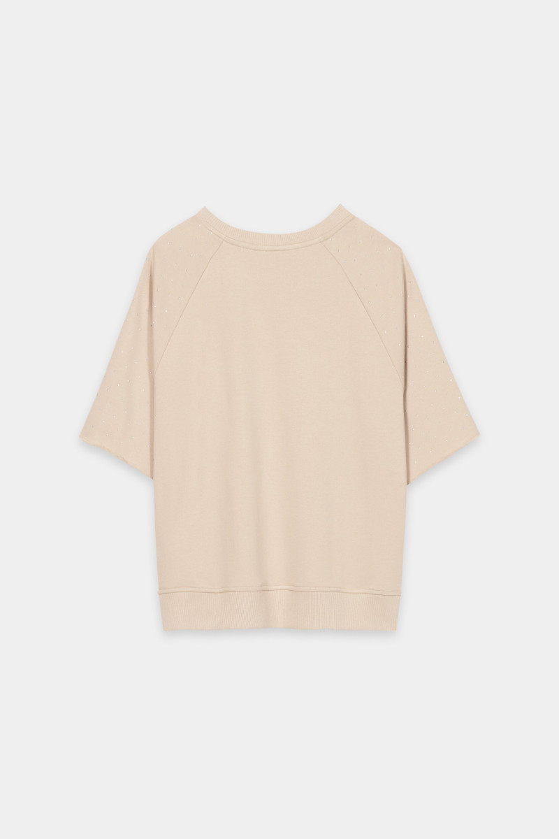 Sweatshirt aus weicher Baumwolle in lässiger Passform mit Rippbündchen an Saum und Ausschnitt. Die kurzen Raglanärmel mit offen geschnittener Saumkante und glitzernde Hot-Fix-Steinchen setzen einen stylishen Akzent. Unser Model ist 178 cm groß und trägt Größe 36. Obermaterial: 100% Baumwolle Handwäsche