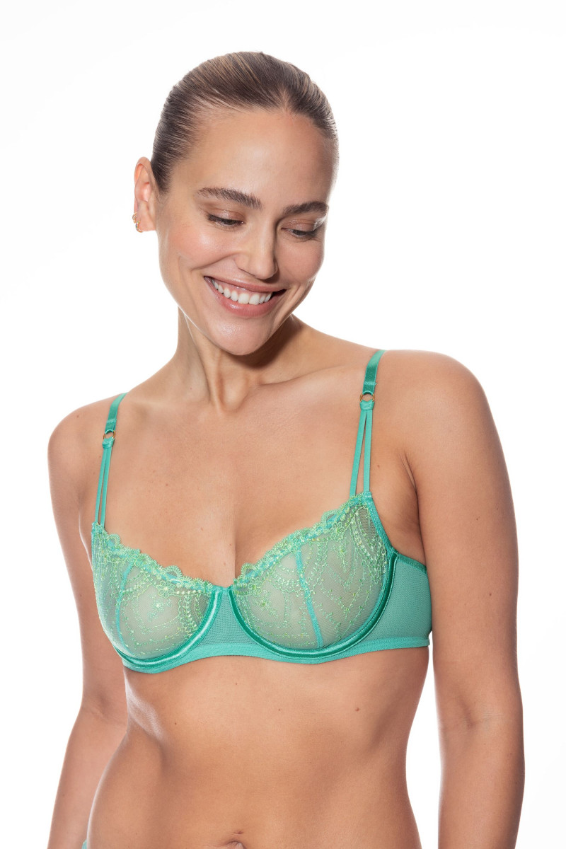 Allover-Tüllspitze | Ohne Polsterung | Genähter Cup, optimale Unterstützung | Mit Bügeln | Breiter Steg | Feine verstellbare Träger | Haken-Ösen-Verschluss, dreifach verstellbar
