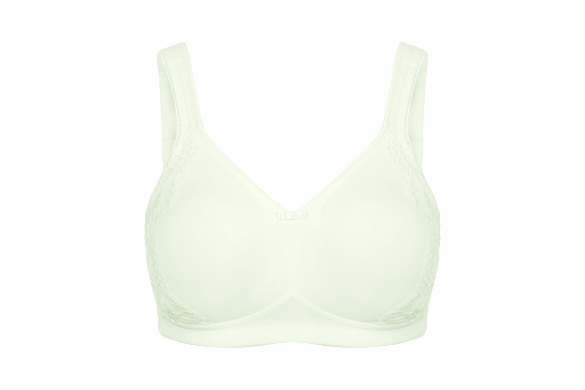Gemoldeter Minimizer-BH ohne Bügel der Serie LONDON - Dank besonderer Schnittführung wird die Büste optisch um eine Cup-Größe reduziert - Die gemoldeten Cups geben optimalen Halt speziell bis in große Größen - Dezente Spitze seitlich am Cup setzt modische Akzente - Kein Abzeichnen unter der Kleidung - Breite, verstellbare Träger verhindern Einschneiden auf der Schulter - 2x3 Häkchenverschluss - MADE IN EUROPE & STANDARD 100 by OEKO-TEX® zertifiziert