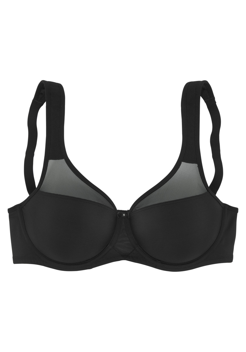 Hübscher Minimizer-BH auf Formbügel gearbeitet | Extra breite, leicht gefütterte Träger zum Entlasten der Schultern | Modische Einsätze aus transparentem Netzmaterial oberhalb der Cups (ohne Wattierung) | Verstellbare Träger und Rückenverschluss.