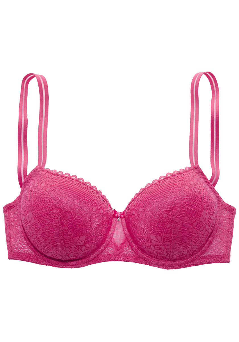 Femininer Schalen-BH in hübscher Balconette-Schnittform. Leicht wattierte Cups auf Formbügel gearbeitet - für ein tolles Dekolleté. Vorn aus feiner Spitze, Rücken aus fancy Mesh. Individuell verstellbare Träger sowie Rückenverschluss.