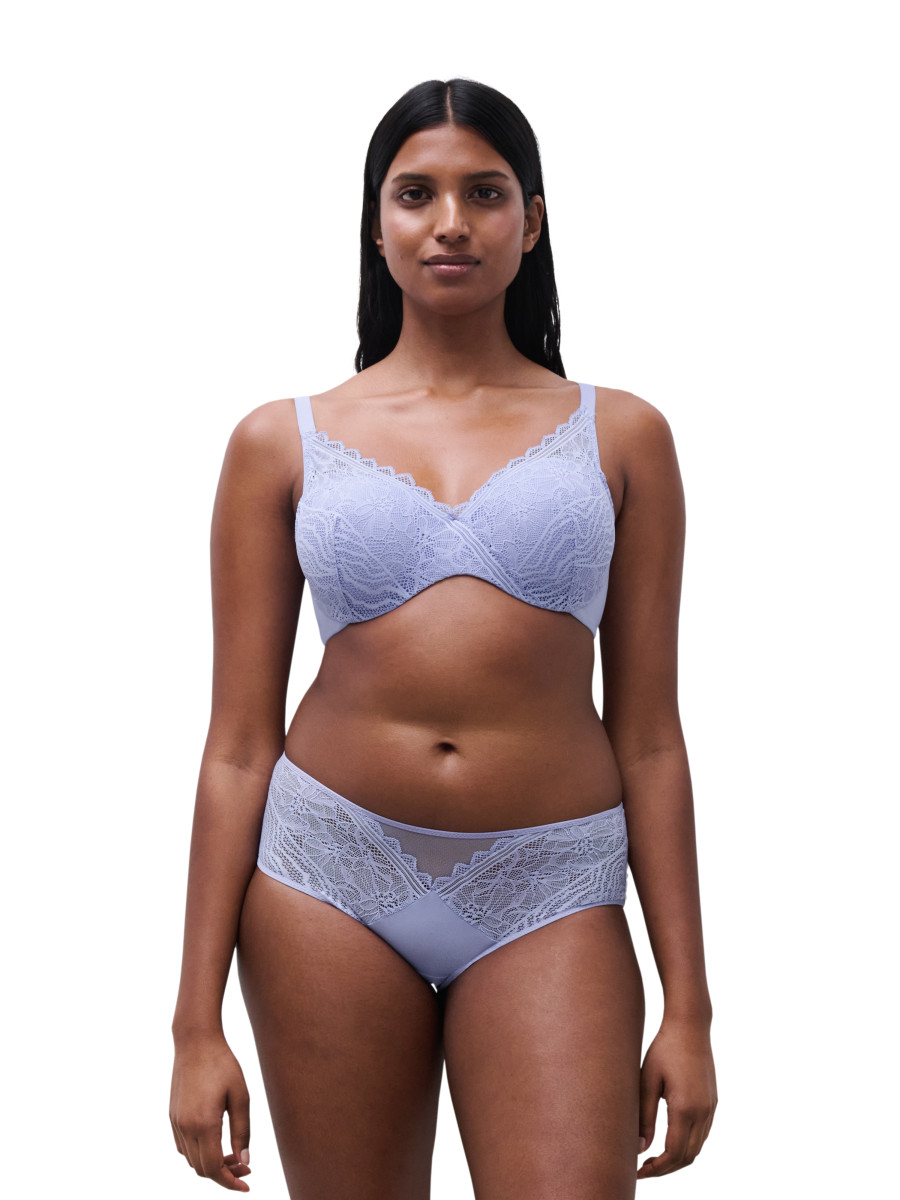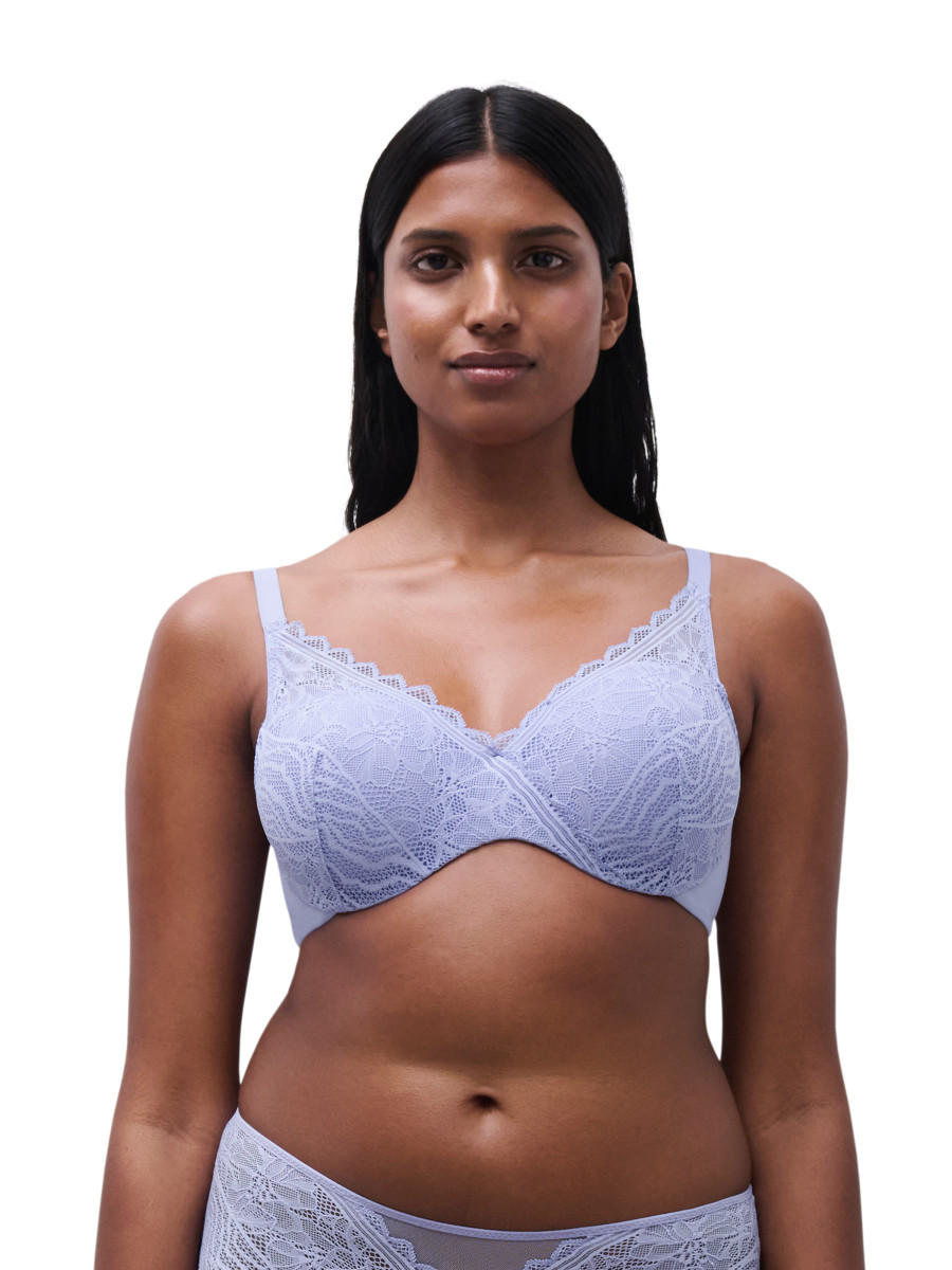 Die perfekte Mischung aus Weiblichkeit und Komfort durch die Kombination von floraler Spitze und ultraweichem Mesh. Beruhigende Formen für optimalen Halt bis zum HCup. Gekreuzte Spitze für einen "Wrapover"Effekt. Flache und nahtlose Abschlüsse für maximalen Komfort. Umweltfreundliche Linie.