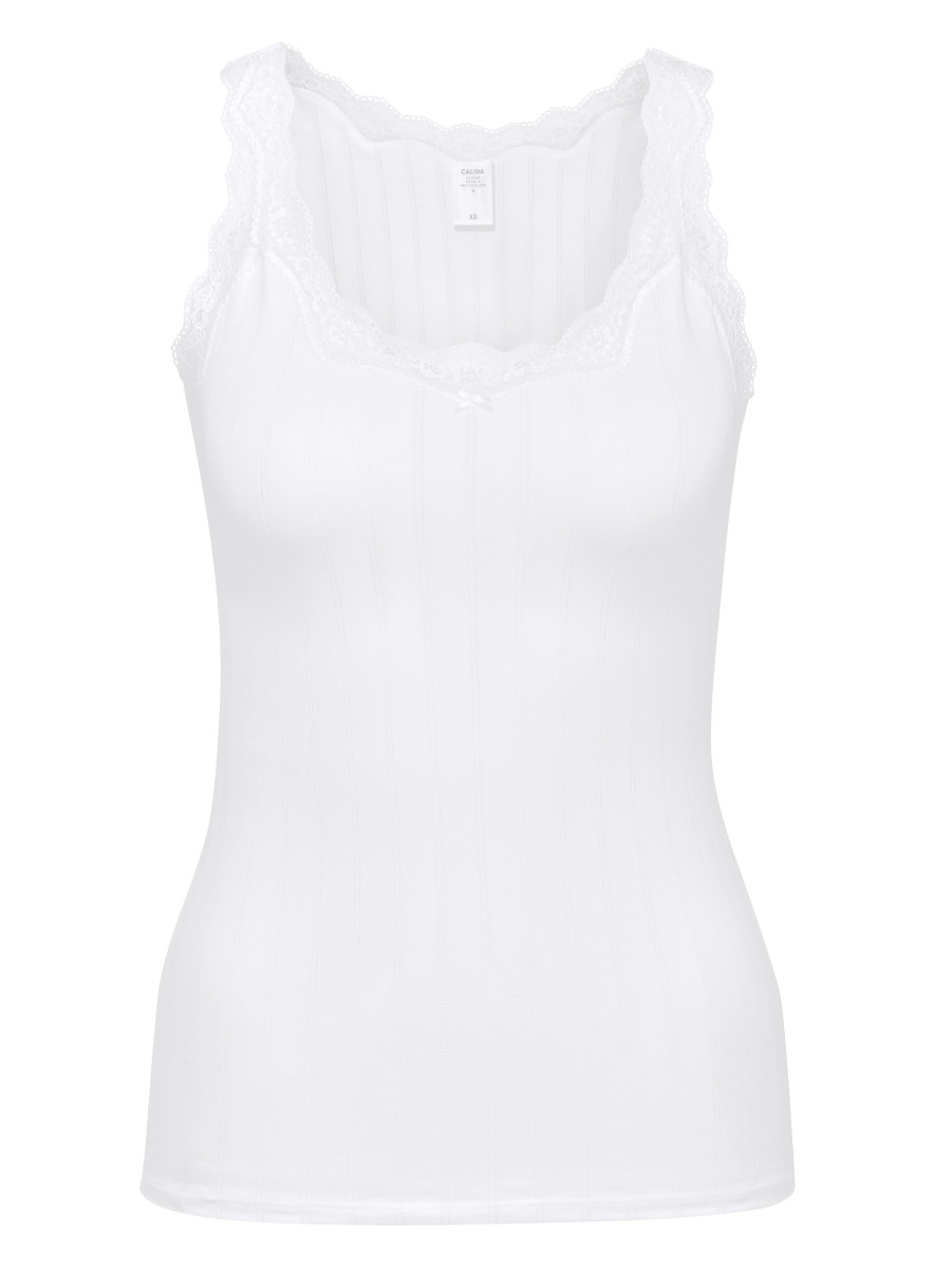 Ein nostalgischer Nadelzug, allerbeste Verarbeitung und hochwertige Supima®-Baumwolle zeichnen die Serie ETUDE TOUJOURS von CALIDA aus. Das schicke Unterhemd mit der besonders schön verarbeiteten Spitze, die bis in die Träger übergeht, kann auch wunderbar zur Oberbekleidung kombiniert werden.