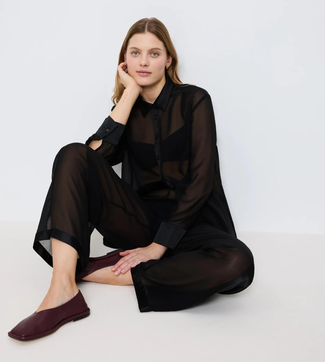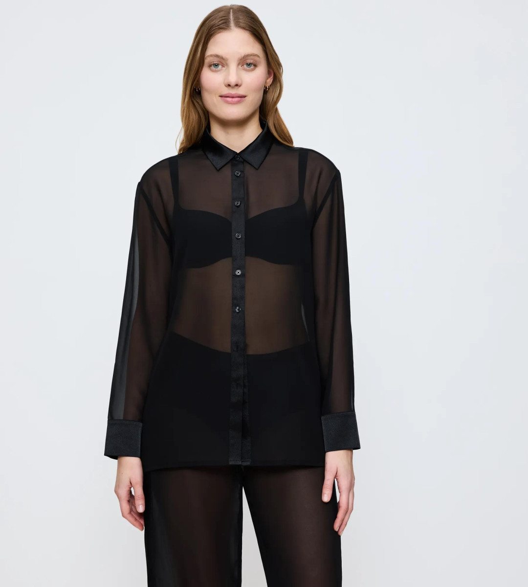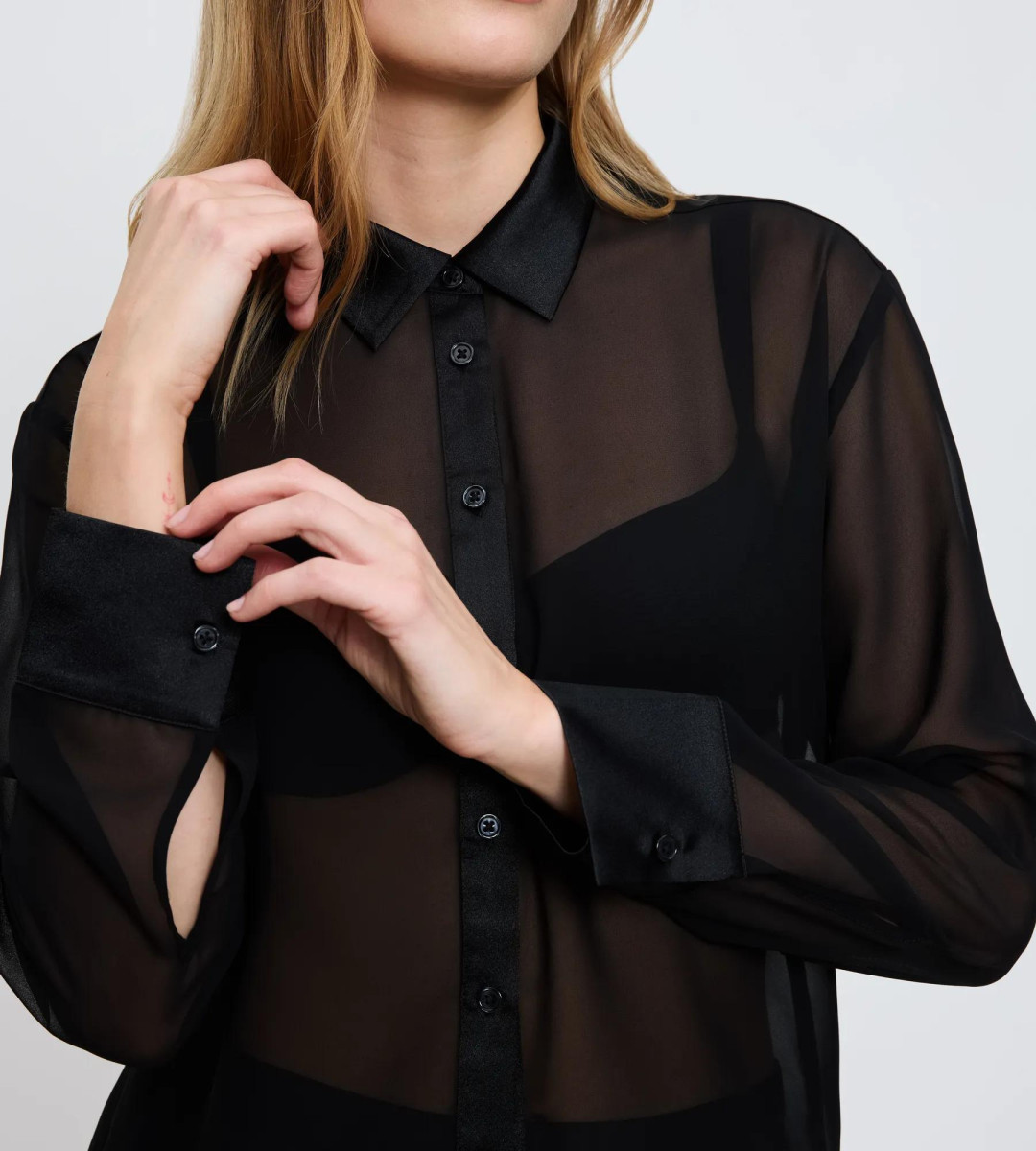 Diese Button-Down-Bluse aus Chiffon verspricht unvergessliche Augenblicke. Die schmeichelnde, feminine Form der Bluse bietet unzählige Stylingmöglichkeiten. Der transparente, leichte Chiffon und die schimmernden Satineinsätze an Kragen und Manschetten sorgen für einen Hauch verführerischer Eleganz, perfekt für besondere Anlässe. Dieser Style aus 100 % Recyclingpolyester ist GRS-zertifiziert.