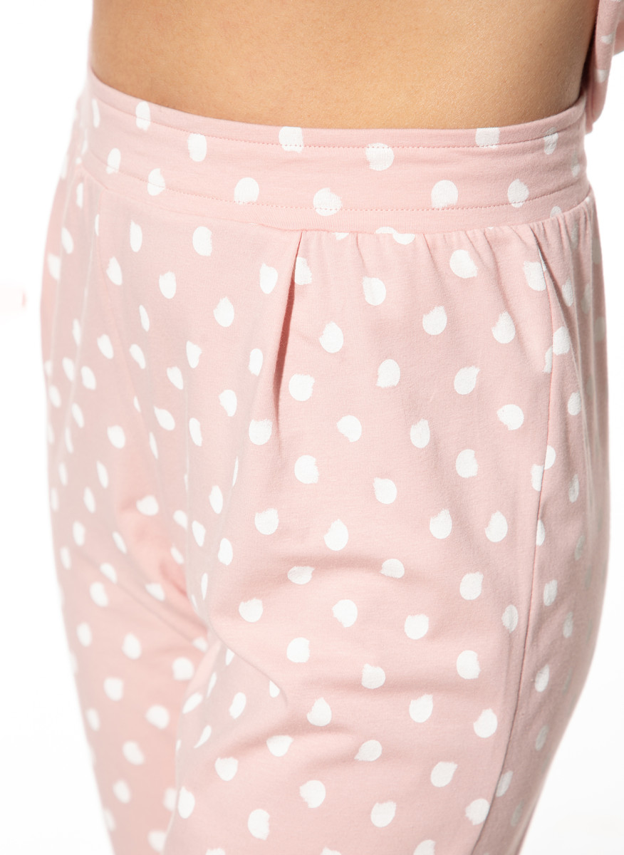 Diese verspielte Schlafhose für Damen in Rosa mit weißem Punkte-Allover bietet besten Komfort und einen charmanten Look.