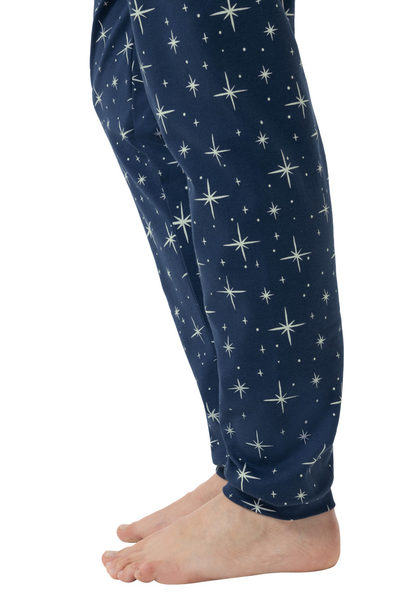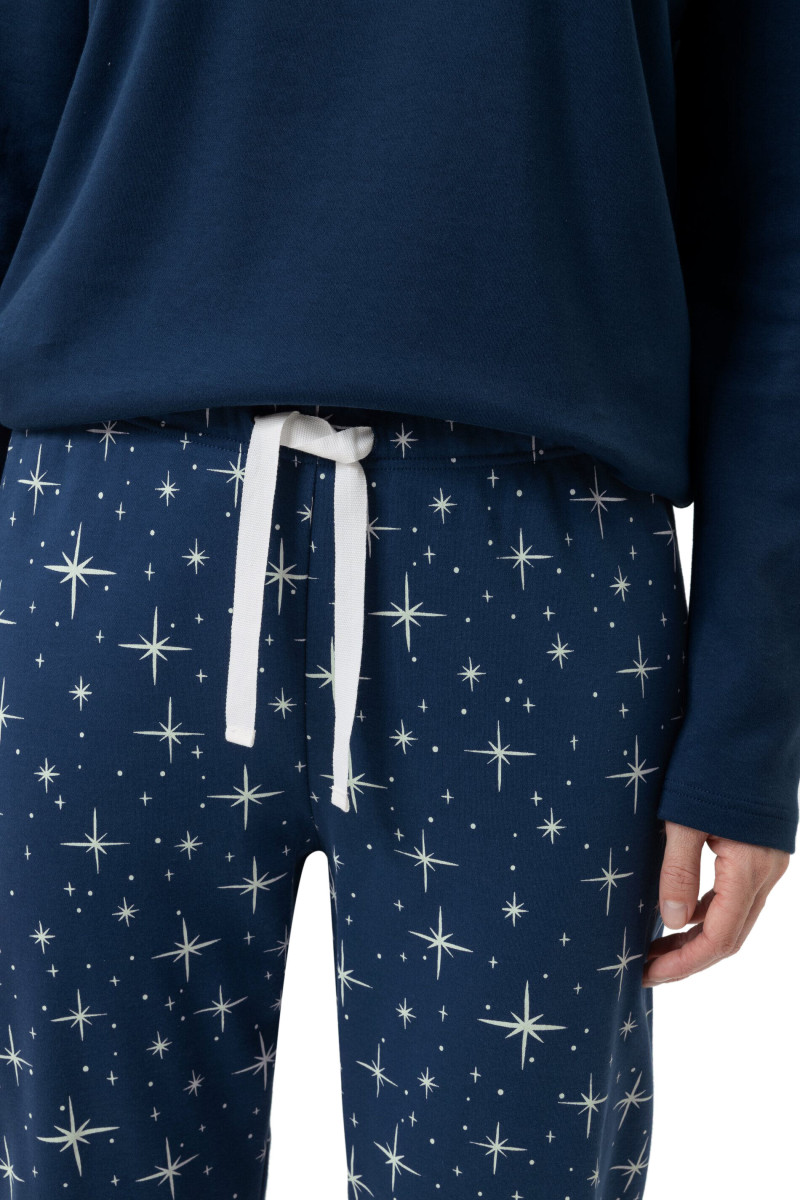 2-teiliger langer Pyjama | Legere Passform | Unifarbenes Shirt | Langarm | Hose mit Bündchen | Design: Sterne-Print | Komfortbund mit Gummizug | 100 % Baumwolle: gerauter Interlock