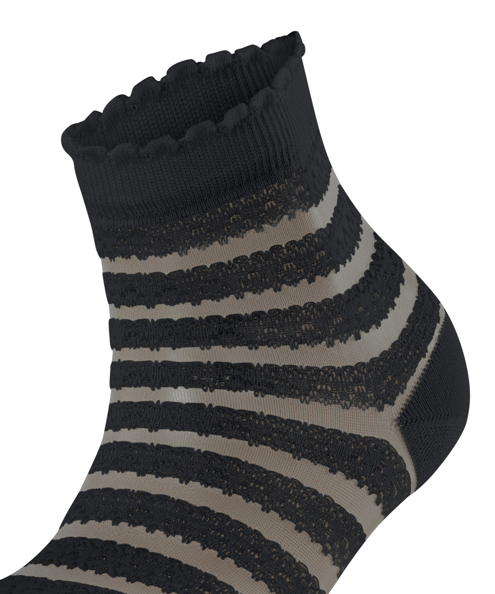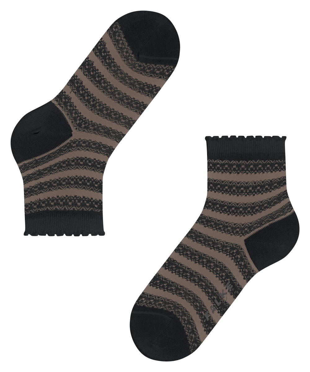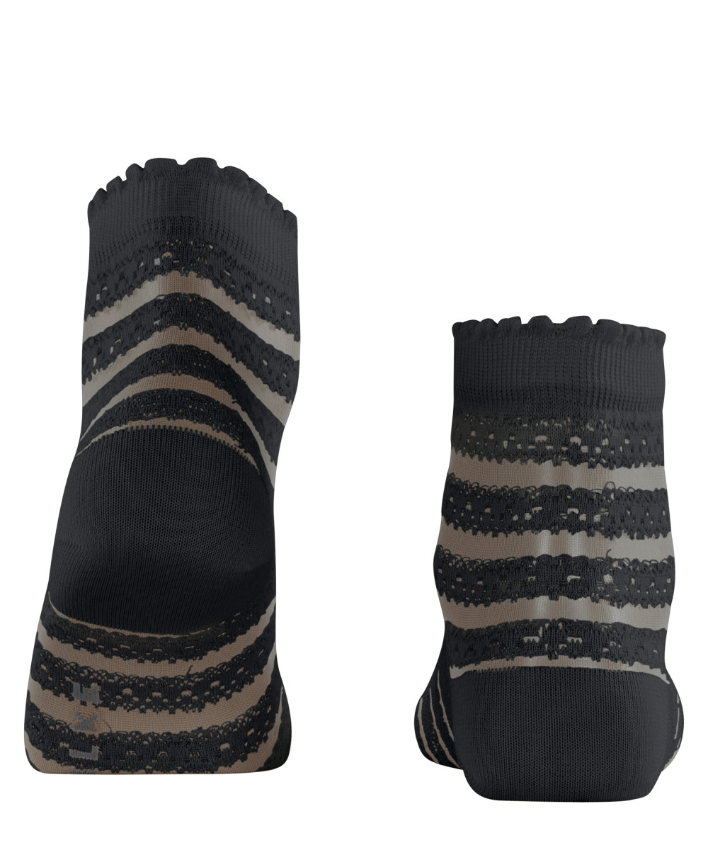 Dieser besonders feminine Kurzstrumpf überzeugt mit einem raffinierten Design, das traditionelle Spitze und Vintage-Häkelmuster auf moderne Weise vereint. Das transparente Allover-Streifenmuster interpretiert klassische Spitzenmotive neu und sorgt für einen romantischen Look. Das Highlight des Styles ist sein feminines Abschlussbündchen mit einer modernen Rüschen-Optik. Die Kombination aus hautfreundlicher, nachhaltiger Baumwolle gepaart mit Funktionsgarnen sowie der perfekten FALKE-Passform garantiert höchsten Tragekomfort. Sowohl zu Sneakern, als auch in Sandalen avanciert dieser Artikel zum absoluten Hingucker.Lief.-Art-Nr: 46915