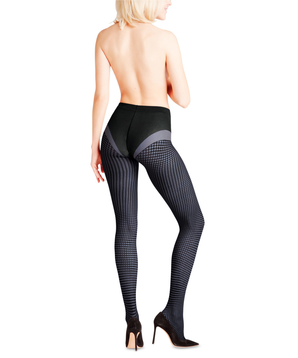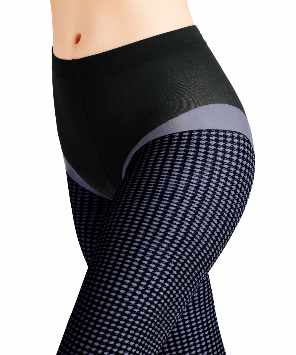 Mit einem klassisch-eleganten, sowie immer modischen Hahnentrittmuster präsentiert sich diese Feinstrumpfhose für einen stilsicheren Auftritt. Durch die kontrastreiche Abhebung der Musterung vom Untergrund wird eine besonders klare Musterqualität gewährleistet. Ein besonderes Highlight stellt zudem das exklusive Höschenteil dar, das neben der perfekten FALKE-Passform optisch eine optimale Formung femininer Kurven hervorruft.
