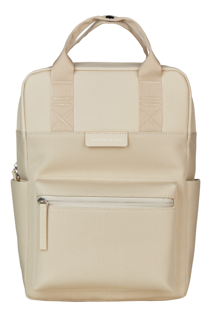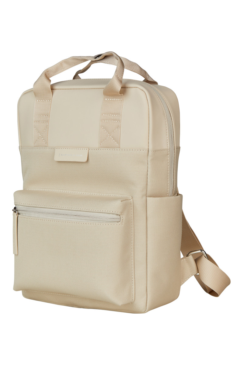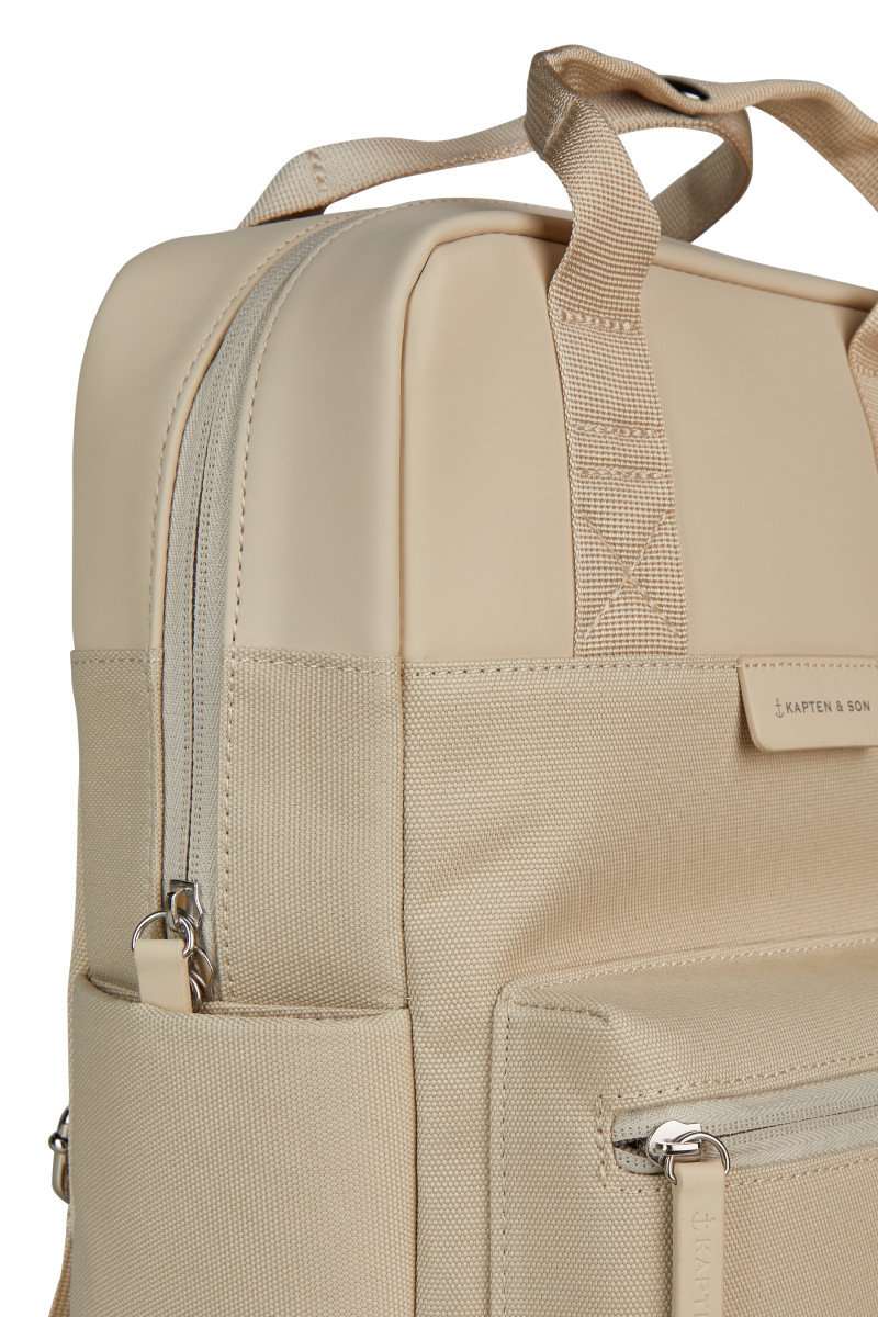 Stylischer, funktionaler Rucksack | Glattes, veganes Tech-Material im oberen Teil und recyceltes PET mit leichter Struktur im unteren Teil ergeben einen hochwertigen Materialmix | Laptopfach innen: 30,5 x 22 x 2,5 cm (z.B. 13" MacBook) | Drei Außenfächer | Justierbare Trägerriemen | Volumen: 9 Liter | Maße: 33,5 (H) x 23,5 (B) x 9,5 (T) cm