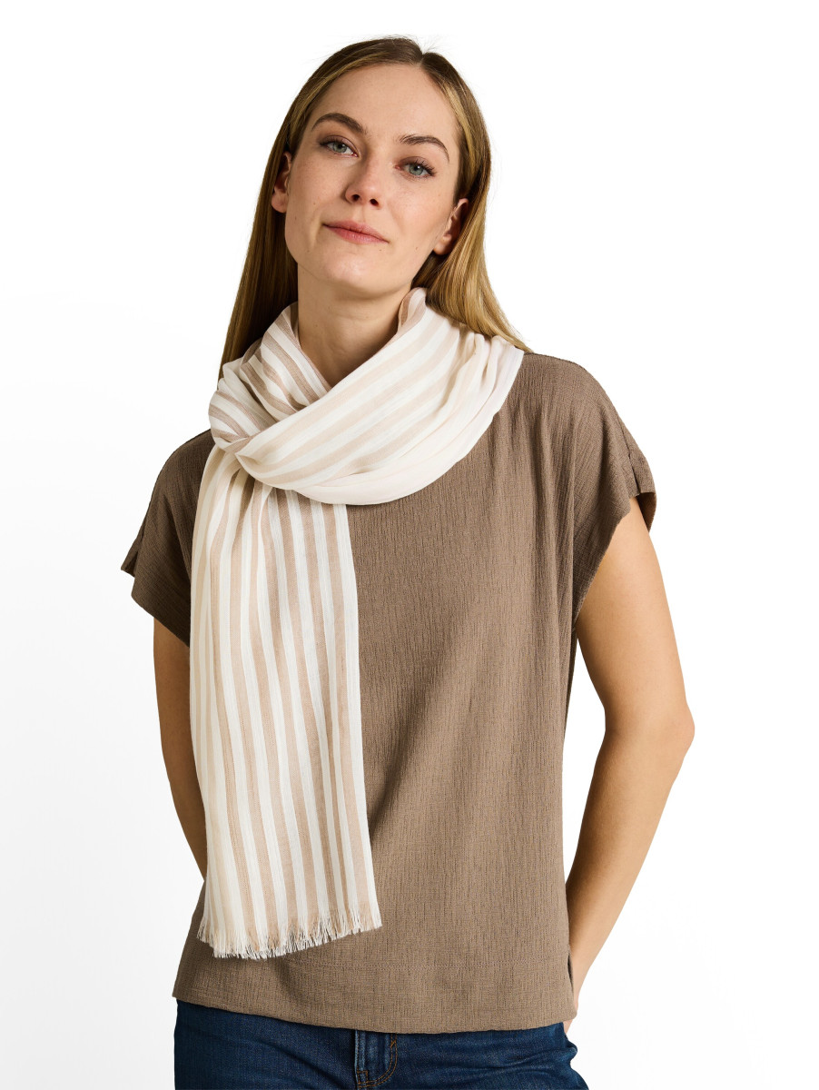 Dieses gemusterte Halstuch verfügt über feine Streifen und leichte Fransen, die dem Look ein modisches Detail verleihen. Der gewebte Polyester-Stoff sorgt für ein leichtes Tragegefühl und lässt sich vielseitig kombinieren. Ein elegantes Accessoire für Damen, das sowohl casualen als auch formellen Outfits einen dezenten Akzent gibt.Lief.-Art-Nr: 1050334