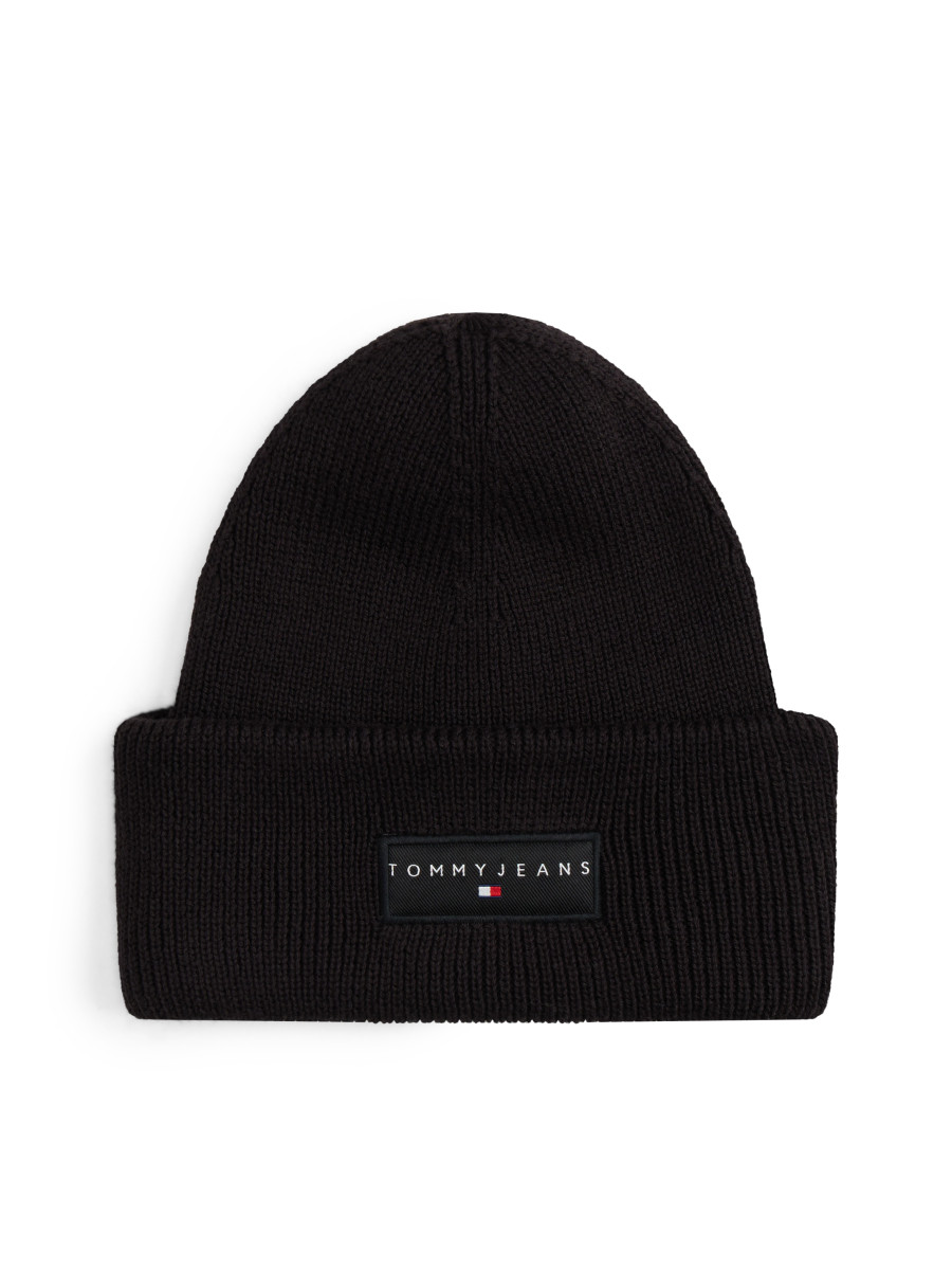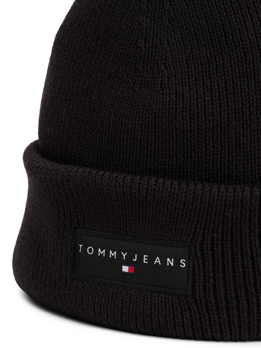 Perfektioniert wird der Look durch die TOMMY JEANS Mütze. Diese schlichte Beanie in tiefem Dunkelblau (Navy) ist ein vielseitiges Accessoire, das Wärme und urbanen Stil vereint. Gefertigt aus einem weichen Rippstrick, bietet sie einen bequemen Sitz und hält zuverlässig warm. Der Look wird durch das aufgenähte, rechteckige TOMMY JEANS Logo-Patch mit den ikonischen Farben (Rot, Weiß, Blau) akzentuiert. Die Kombination aus dem karogemusterten Flanell und der unifarbenen Mütze schafft einen harmonischen, authentischen Freizeit-Look, der Lässigkeit und Markenbewusstsein ausstrahlt.