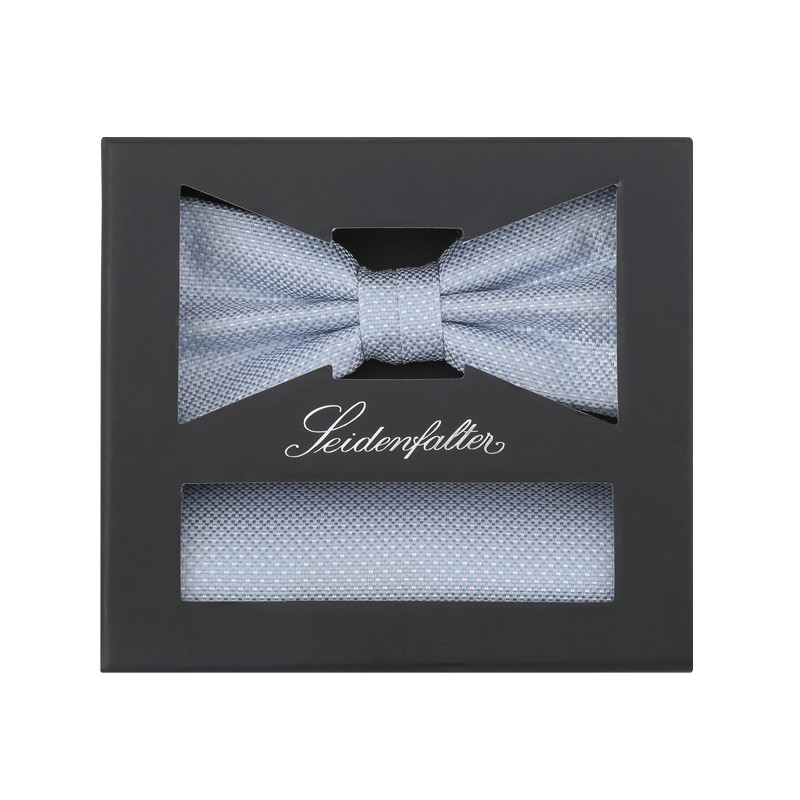 Seidenfalter Set Fliege + Einstecktuch | Breite: 5,5 cm | Länge: 11,0 cm | Maße Einstecktuch: 28 x 28 cm | Verstellbares Größenband | Qualität: 100% Seide | hochwertige Verarbeitung