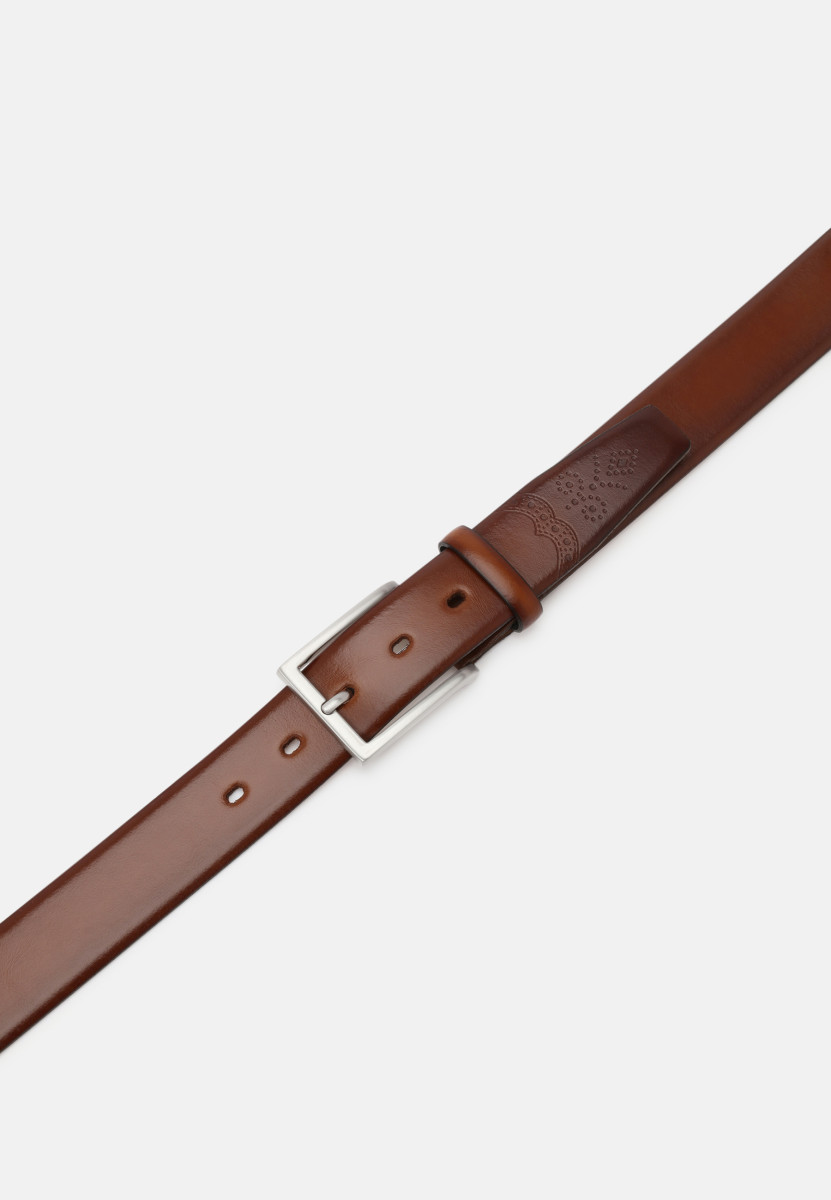 bombierter Ledergürtel mit Kantenfinish und budapester Lochmuster, Breite: 3,5cm, kürzbar