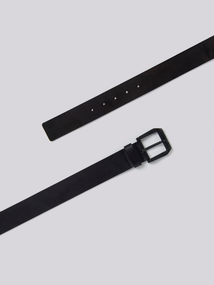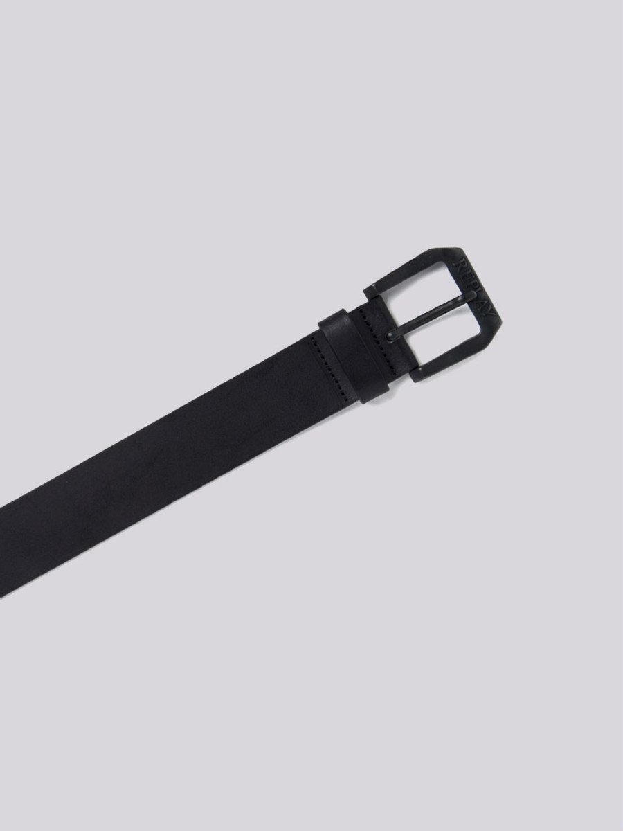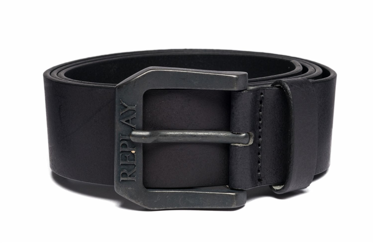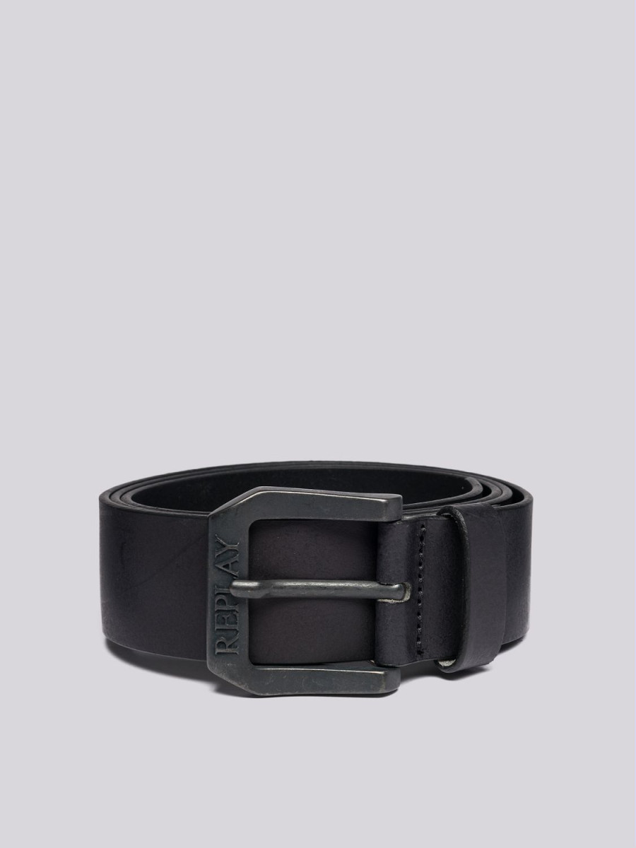 Gürtel aus einfarbigem gebürstetem Leder mit eckiger Schnalle mit mattem Finish sowie Dorn mit reliefartigem REPLAY-Reliefschriftzug. Breite 4 cm.