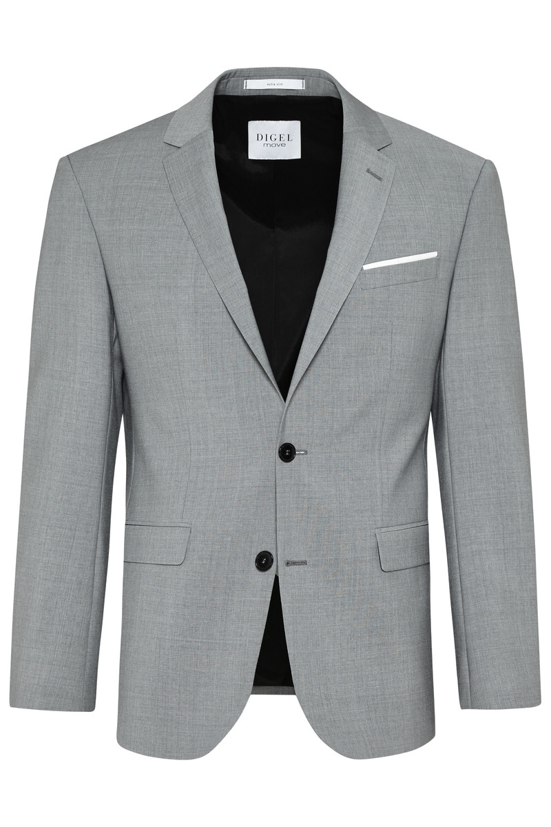 Der Extra Slim Fit Sakko von der Marke Digel präsentiert sich mit idealer Passform sowie klassischen Details: Reverskragen, paspelierte Pattentaschen, sowie einer einreihige Knopfleiste und 4-Manschetten Knöpfe pro Ärmelabschluss. Tragen Sie diesen Anzug zu Business- oder besonderen privaten Anlässen für einen stilvollen Auftritt! Sakko Extra Slim Fit einreihige Knopfleiste Reverskragen paspelierte Pattentaschen 4-Knopf-Manschette schmale Passform