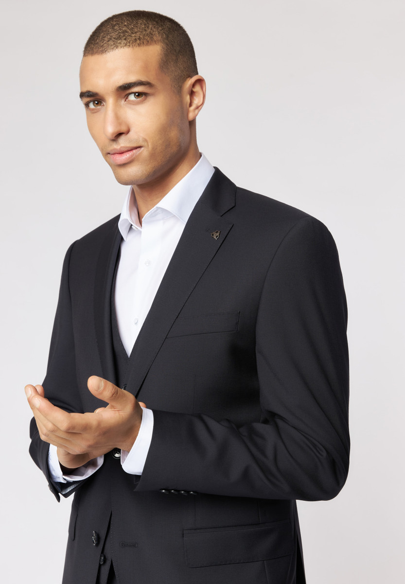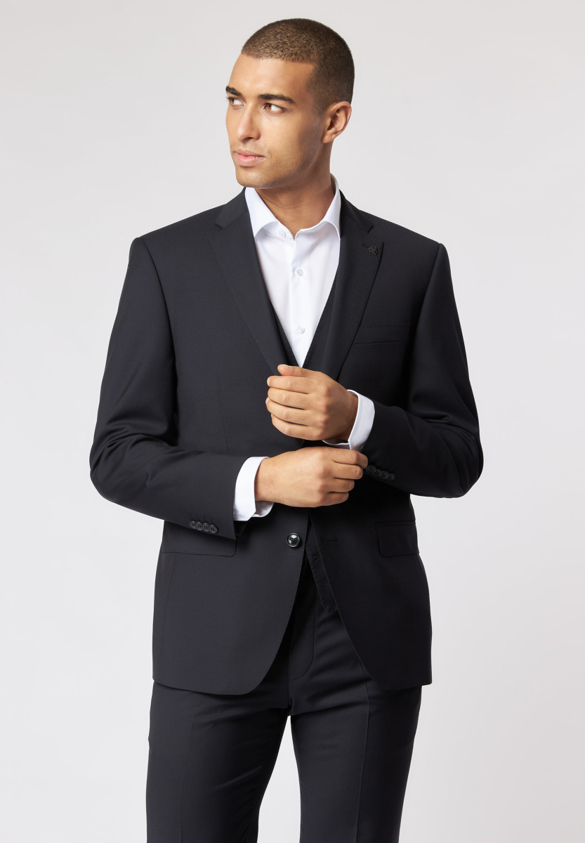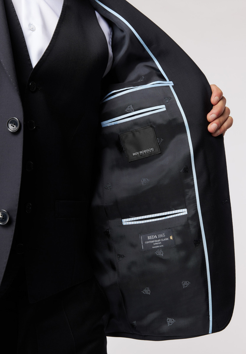 Roy Robson Herren Baukasten-Sakko feinstes Schurwollgewebe Revers mit tonalem Stitching an den Kanten Ärmelmanschette mit vier Knöpfen Einreiher-Sakko Zweiknopf-Verschluss eine Brustleistentasche Formgebende Abnäher drei Innentaschen glänzendes Futter schmale Passform