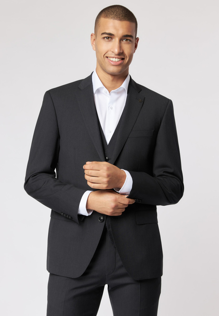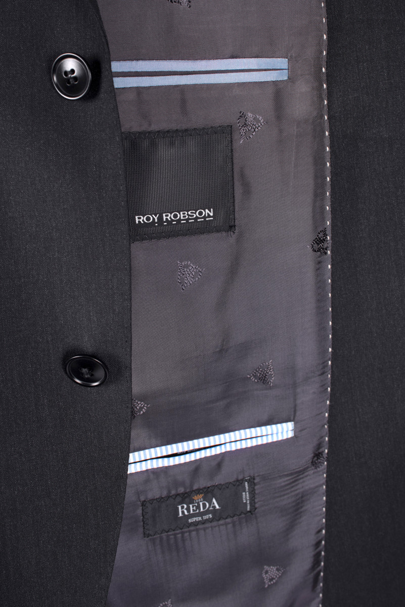 Roy Robson Herren Baukasten-Sakko feinstes Schurwollgewebe Revers mit tonalem Stitching an den Kanten Ärmelmanschette mit vier Knöpfen Einreiher-Sakko Zweiknopf-Verschluss eine Brustleistentasche Formgebende Abnäher drei Innentaschen glänzendes Futter schmale Passform