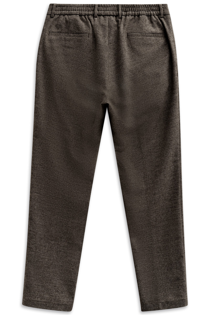 Hose mit Schubtaschen und Gesäßtaschen mit Knopf. Bundfalte und elastischer Einsatz im Bund. Das Taschenfutter setzt farbliche Akzente. Der Artikel der Weberei Riopele hat einen 39% Wollanteil und einen angenehm leichten Griff. Zugehöriges Sakko separat erhältlich.
