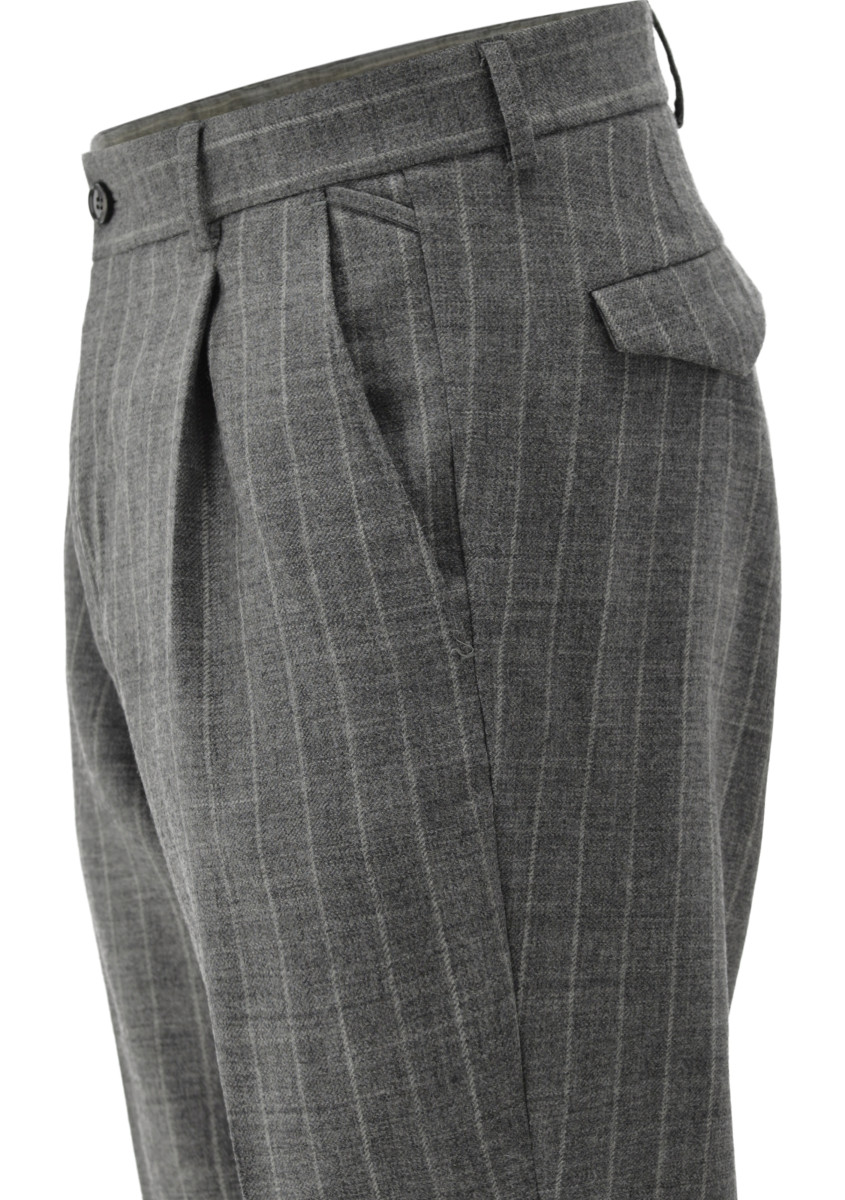 Die Schurwollhose CG Obey von Savile Row by CG – CLUB of GENTS verbindet klassische Eleganz mit modernem Stil. Die Hose ist im Oversize Fit geschnitten und bietet dadurch eine besonders legere Silhouette. Die Stoffhose mit Bundfalte und einem Hosenumschlag verleihen ihr einen modischen Akzent. Das Besondere: Die Längsstreifen strecken optisch das Bein und sorgen so für eine schlanke, elegante Wirkung – ideal, wenn Du Wert auf eine stilvolle und gleichzeitig moderne Erscheinung legst.