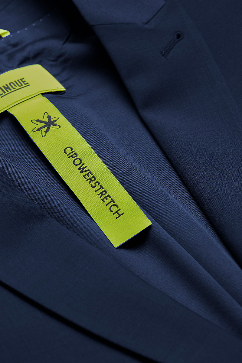 Hochelastisches Wollmischgewebe mit hohem Elasthan-Anteil | Schmaler Schnitt | Einreiher mit zwei Knöpfen | Leistentasche auf Brusthöhe | Zwei paspelierte Pattentaschen mit einer Billettasche auf der Vorderseite | Seitenschlitze | Elastisches Rumpf- und Ärmelfutter | Neongelbe Akzente im Rumpffutter und im Labeling stehen für die Modernität des Themas Powerstretch | Formgebenden Seitennähte | Hoher Tragekomfort