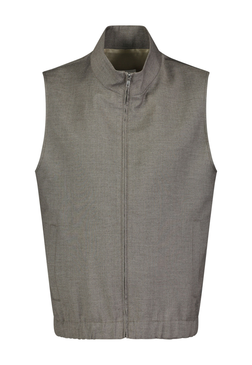 Diese ärmellose Herrenweste in Grau vereint minimalistisches Design mit funktionaler Raffinesse. Gefertigt aus hochwertiger, leicht strukturierter Webware, eignet sich die Weste perfekt als modisches Layering-Piece für Übergangszeiten oder kühle Sommerabende. Der durchgehende Reißverschluss, der Stehkragen sowie der elastische Bundabschluss sorgen für einen optimalen Sitz und einen modernen Look.