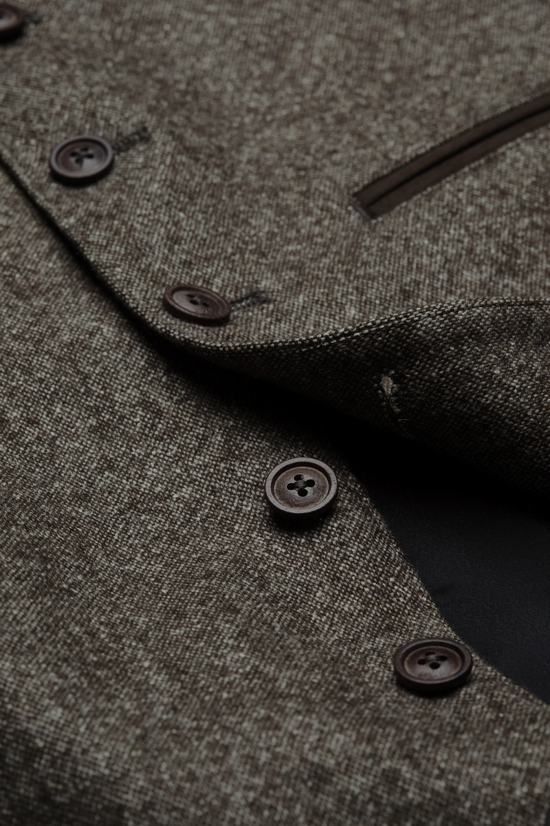 Die Weste ist mit sieben edlen Knöpfen zu schließen und verfügt über drei praktische Eingrifftaschen mit feinen Lederapplikationen – ideal für kleine Essentials oder die Handwärme. Perfekt kombinierbar zu Hemd und Sakko oder lässig über Pullover für den modernen Gentleman.