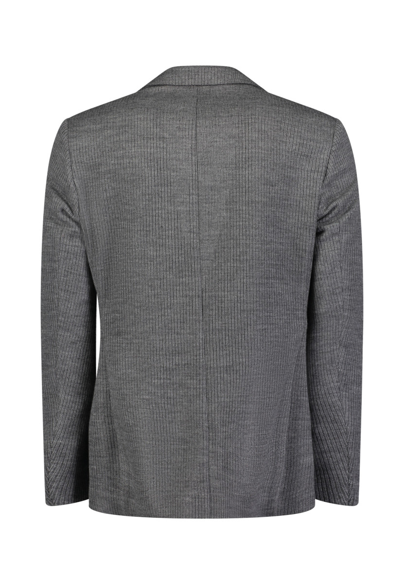 Dieser graue Herren-Blazer ist die perfekte Kombination aus elegant und lässig und somit ideal für den modernen Mann. Das melierte Strickmaterial mit subtilen vertikalen Streifen verleiht ihm eine lässige Note, während der klassische Schnitt mit Reverskragen und zwei Knöpfen für eine schicke Silhouette sorgt.