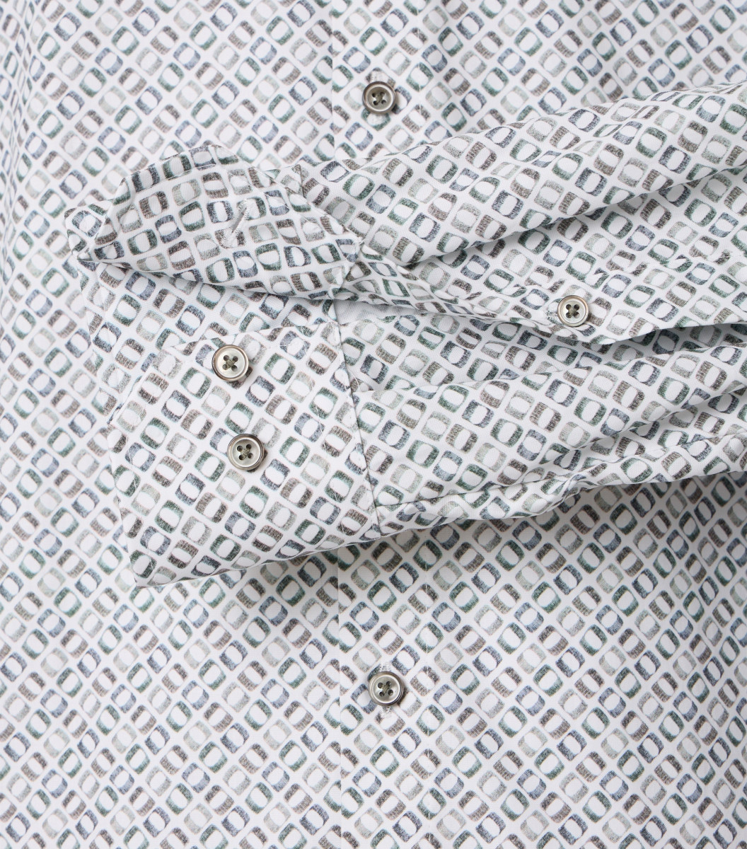 Für Herren, die ihre Hemden gerne etwas figurbetonter tragen, ist dieses Hemd durch seine taillierte Schnittführung die richtige Wahl. Das Hemd trägt sich zudem dank der Verarbeitung aus reiner Baumwolle besonders angenehm. Der Allover-Print setzt dabei modische Akzente und wertet jeden Businesslook stilvoll auf. Ein echtes Must-have für den modebewussten Mann. Ob zu Stoffhose oder farblich abgestimmter Chinohose, dieses Businesshemd wertet jeden Look stilvoll auf.
