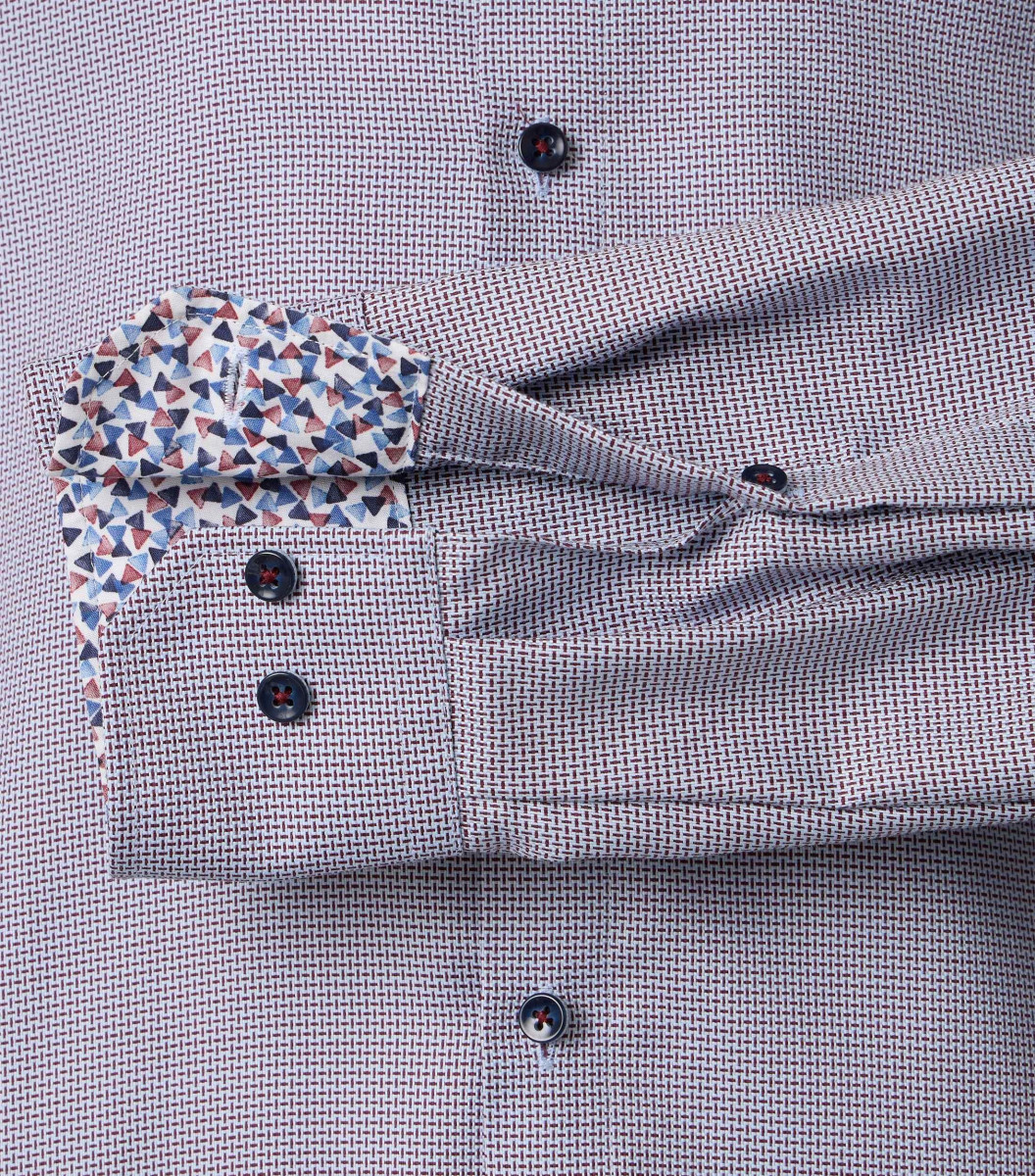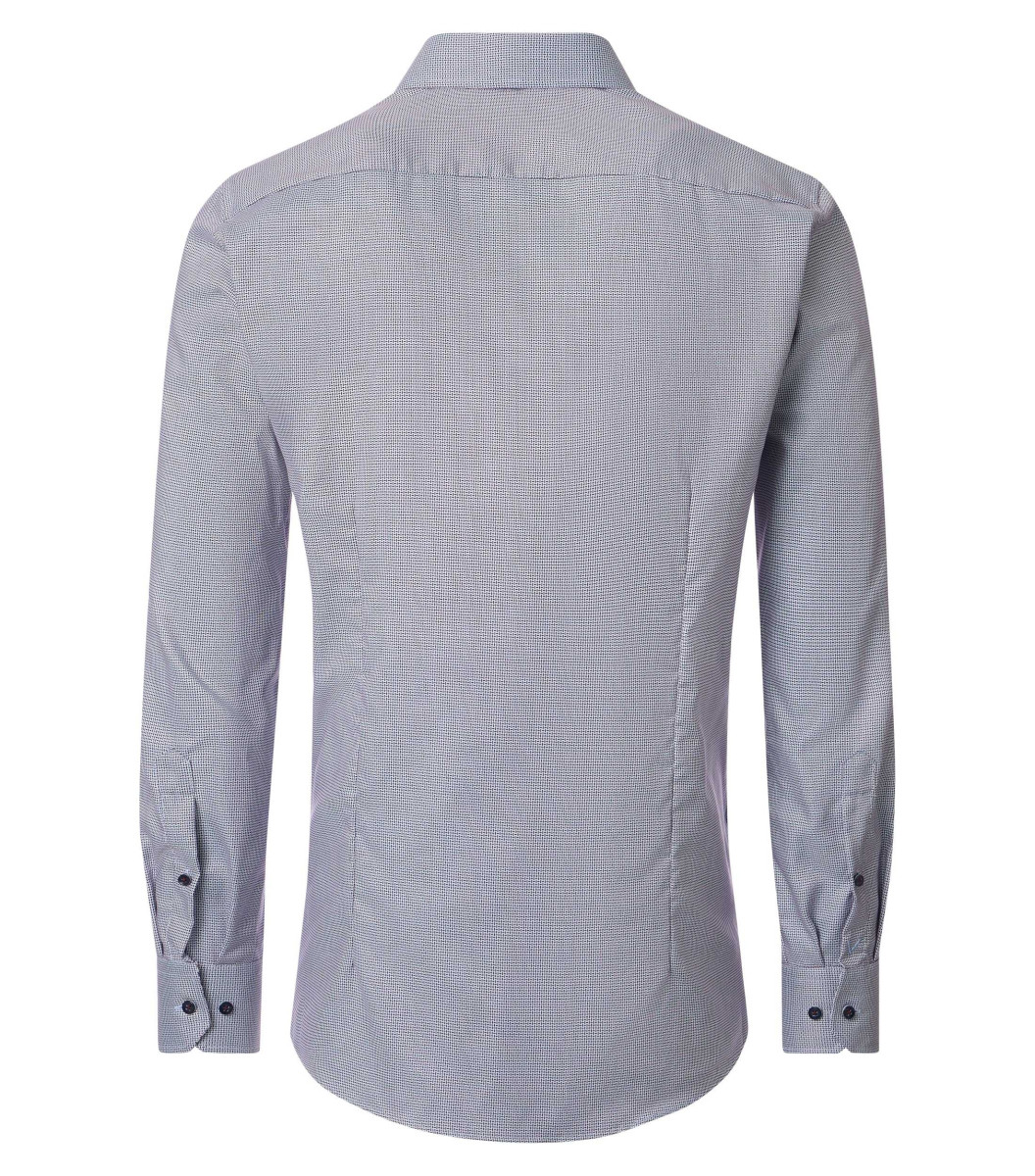 Für Herren, die ihre Hemden gerne etwas figurbetonter tragen, ist dieses Hemd durch seine taillierte Schnittführung die richtige Wahl. Dabei setzt der modische Minimal-Print das Modell gekonnt in Szene. Ob zu Stoffhose oder farblich abgestimmter Chinohose, dieses Businesshemd wertet jeden Look stilvoll auf.