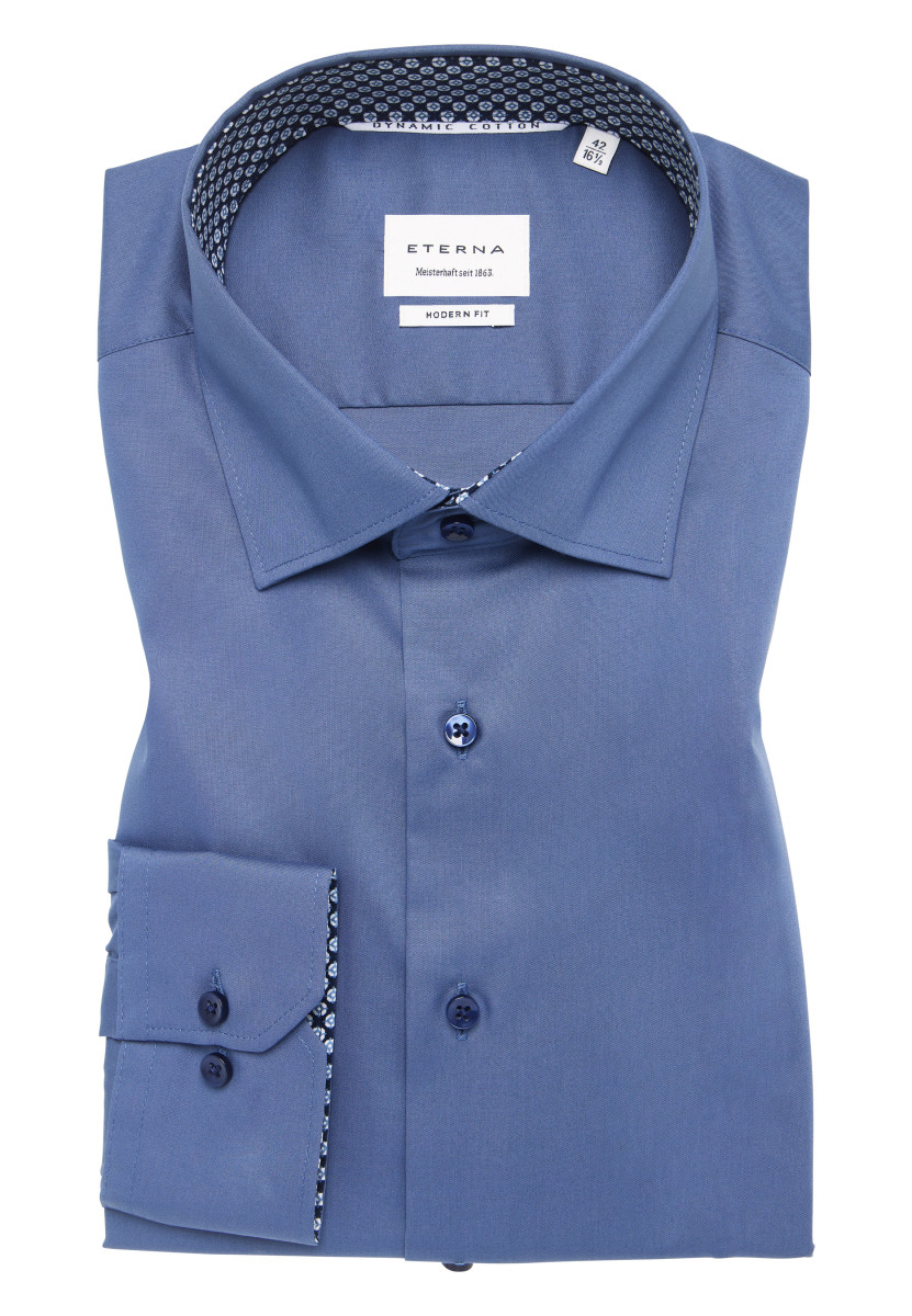 Dynamic Cotton ™ - mit natürlichem Stretch-Effekt ohne Synthetik. Dieses knitterfreie Dynamic Cotton ™ Langarmhemd kombiniert 100% Baumwolle mit einer innovativen Webtechnologie, die einen optimalen Stretcheffekt nur durch natürliche Fasern garantiert. Diese einzigartige Kombination vereint bügelfreien Tragekomfort und Nachhaltigkeit zu einem neuen Standard für höchste Ansprüche. Für alle modisch orientierten Männer bieten wir dieses unifarbene Dynamic Cotton ™ Modern Fit Langarmhemd, mit Kent-Kragen und trendigen Patchungen, an. Gefertigt in taillierter Schnittführung, die alle Männer anspricht, die den klassischen Look etwas modischer interpretieren wollen. Der Saum ist in normaler Länge gerundet und kann auch ganz lässig über der Hose getragen werden. Gleich heute noch, dieses nachhaltige und funktionsüberlegene Hemd, online bestellen!
