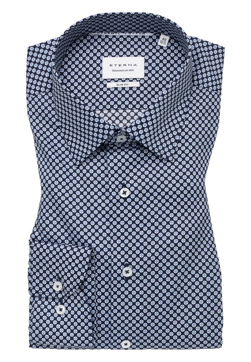 Dieses elegante Herrenhemd ist die ideale Wahl für den modernen Business- oder stilvollen Casual-Look. Es besticht durch ein feines, durchgängiges geometrisches Muster, oft bestehend aus kleinen, sich wiederholenden Kreis- oder Punkt-Elementen, das dem Hemd eine strukturierte und dynamische Optik verleiht. Gefertigt aus einem hochwertigen, oftmals bügelfreien oder bügelleichten Baumwollgewebe, bietet es exzellenten Tragekomfort und ist besonders pflegeleicht. Der klassische Kragen und die durchgehende Knopfleiste mit dezenten, hellen Knöpfen unterstreichen den gepflegten Charakter. Mit seinen langen Ärmeln und der modernen Schnittführung lässt sich dieses Hemd vielseitig kombinieren: elegant unter einem Sakko oder lässig offen über einem T-Shirt. Ein Must-have für Männer, die subtile Muster und höchste Stoffqualität schätzen.
