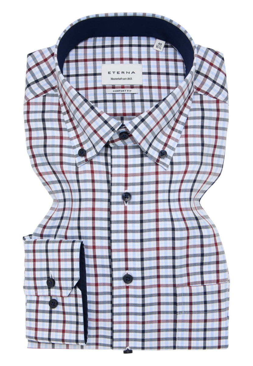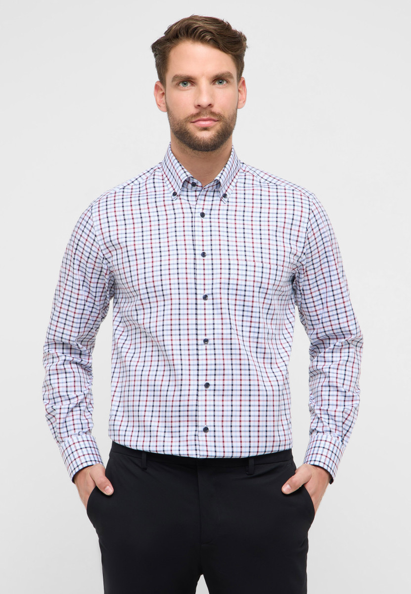 Es ist mit einem klassischen Button-Down-Kragen ausgestattet, dessen Steg innen durch einen unifarbenen Einsatz akzentuiert wird. Diese Detailarbeit sorgt für einen hochwertigen Kontrast. Die durchgehende Knopfleiste ist mit Ton-in-Ton-Knöpfen versehen, die das Design harmonisch abrunden. Mit seiner Brusttasche und dem geraden Schnitt ist dieses Hemd ein vielseitiger Begleiter, der sowohl zur Jeans als auch zur Chinohose eine gute Figur macht und sowohl legere als auch smarte Looks perfektioniert.