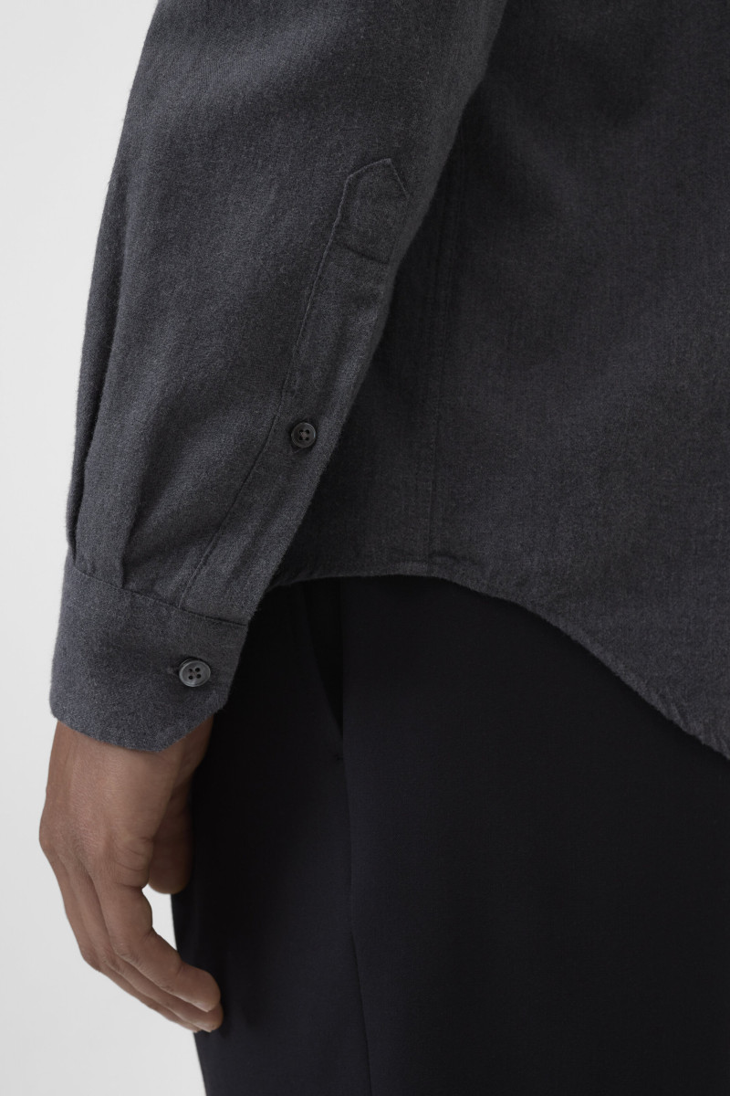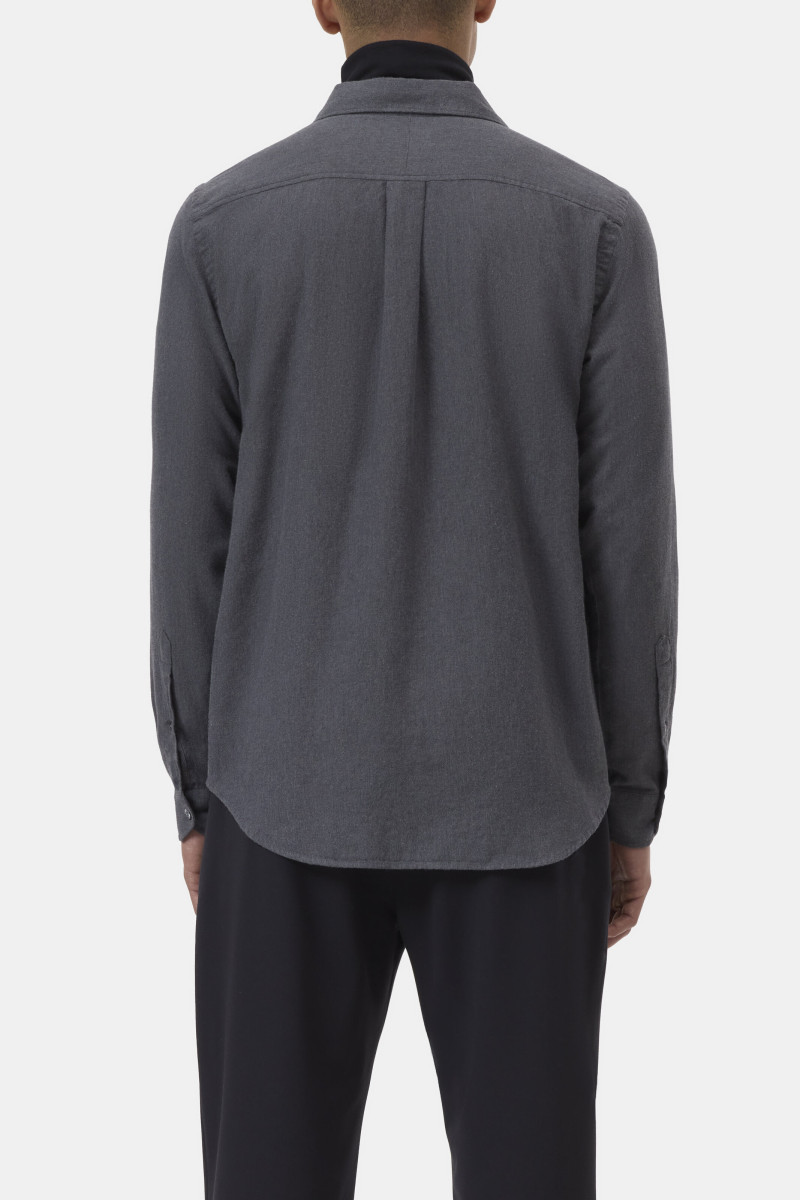 Dieses Hemd aus italienischem Baumwollflanell mit weichem Griff wird aus melierten Baumwollgarnen gefertigt und durchläuft eine schonende Rinse-Wash-Behandlung, die für eine besondere Textur und weiche Oberfläche sorgt. Ausgestattet mit Perlmuttknöpfen, klassischen Manschetten, Kragen, einem gestickten Closed Logo-Monogramm und einer Brusttasche. Hergestellt in Portugal.