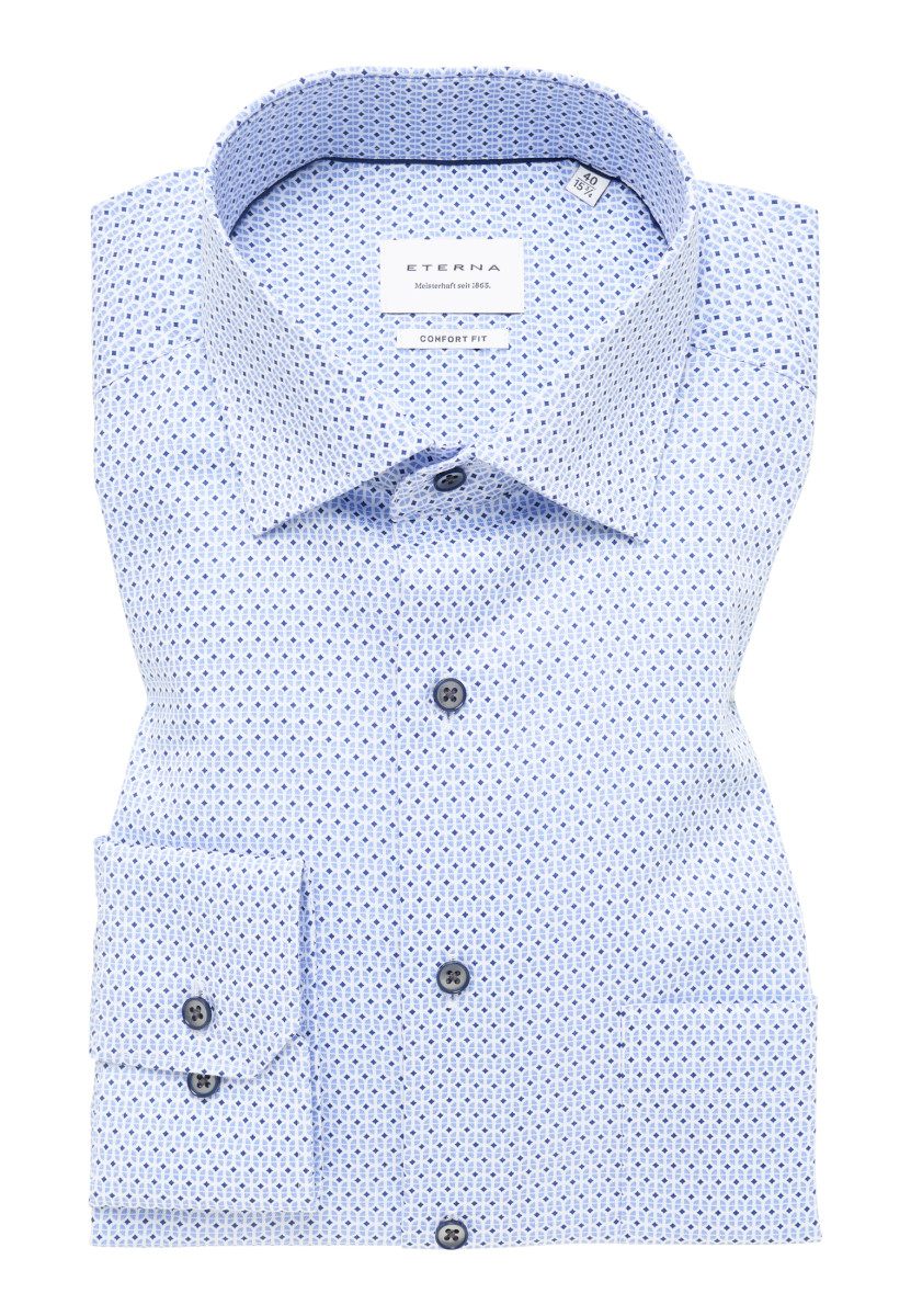Ein Print-Hemd, mit dem Ihnen ein modischer Auftritt garantiert ist. Dieses COMFORT FIT Langarmhemd besticht sowohl mit dem farbharmonischen Allover-Print als auch durch die hochwertige Twill-Qualität. Das Hemd, mit Brusttasche, ist aus 100% feinster Baumwolle (bügelfrei) gefertigt, was für einen soften Griff und Pflegeleichtigkeit sorgt. Die bequeme Schnittführung bietet großzügige Bewegungsfreiheit. Der Classic Kent-Kragen und die praktischen Kombimanschetten vervollständigen den Look. Der Saum ist in normaler Länge gerundet und ermöglich somit, daß es lässig auch über der Hose getragen werden kann.