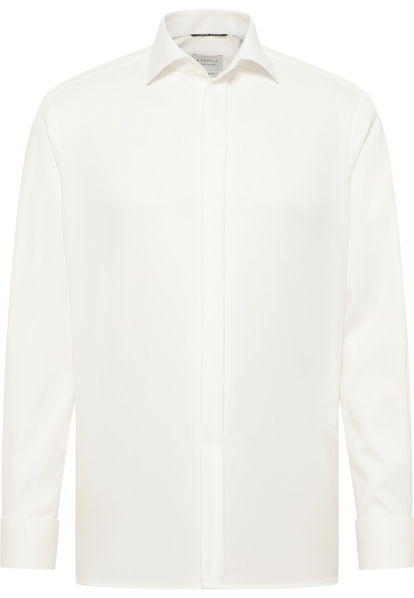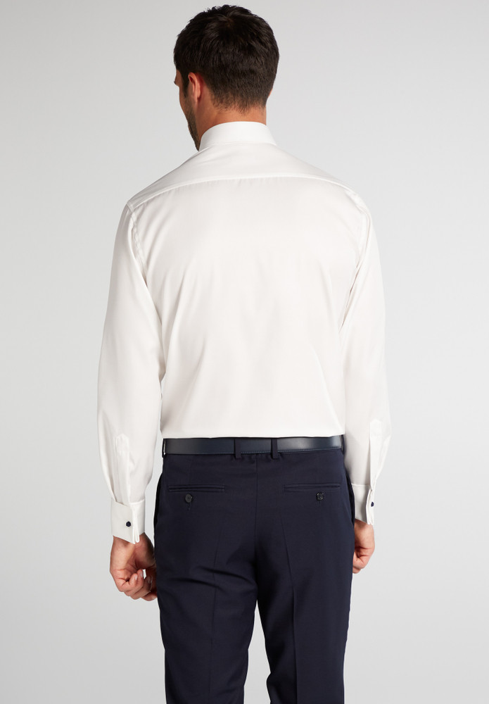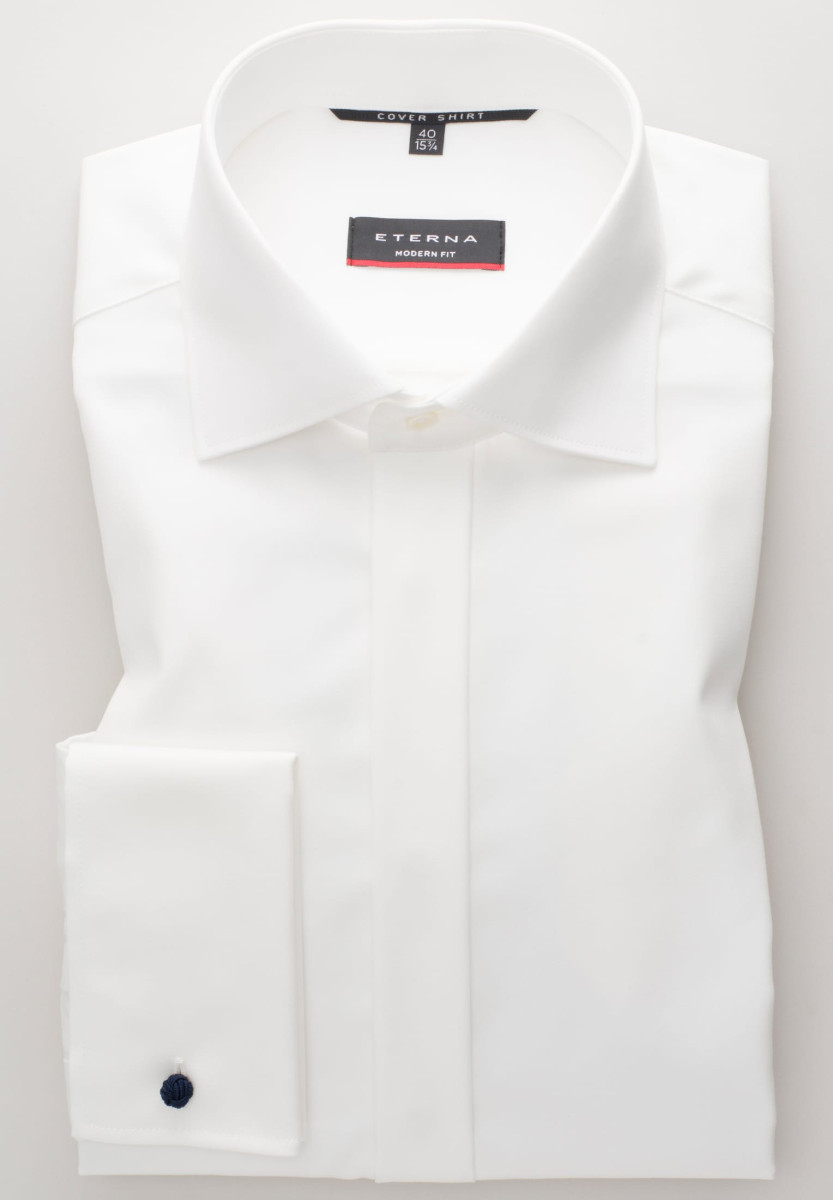 Es gibt immer einen Grund zu feiern! Egal ob Hochzeit, Taufe oder andere festlichen Anlässe - dieses feine COVER SHIRT in leicht taillierter Schnittführung ist für die ganz besonderen Momente in Ihrem Leben. Durch die Umschlagmanschette, die verdeckte Knopfleiste und den Gala Kent-Kragen bringt es Glamour in Ihr Outfit. Der feine Twill (bügelfrei) sorgt an diesem besonderen Tag für ein höchst angenehmes Tragegefühl, das Sie mit Sicherheit zu schätzen wissen werden. Das Gewebe ist blickdicht und verbirgt, was darunter unsichtbar sein soll, auch Tattoos. Kombiniert mit edlen Manschettenknöpfen aus unserem aktuellen Programm ist Ihr Gesamterscheinungsbild perfekt.. Also worauf warten - bestellen Sie noch heute dieses edle COVER SHIRT und Ihre nächste Feier kann ungestört kommen!